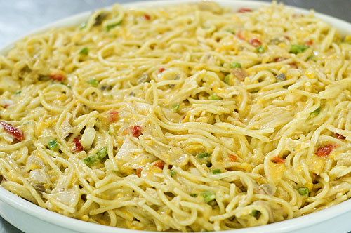 Chicken Spaghetti  THis is one of her classics, I believe.  It’s one of the few recipes in her cookbook.  My mom made it for a shower I hosted once (because she’s awesome like that), and it was the hit of the pastas served.