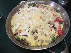 And lastly, I made my first frittata. I kept saying frittata over and over. I don’t think my husband enjoyed it as much as I did. I had tons of vegetables to use, and I had watched the video Kath at http://katheats.com/ made to show how to make them. (I am a bit obsessed with Kath..more on that in a later post.) It was awesome because I used 4 eggs, a few pieces of turkey sausage, a handful of frozen hashbrowns and all of the rest vegetables. (Mushroom, Onion, Pepper, Spinach, Mom’s Garden Tomatoes).