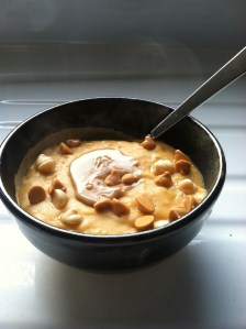 I love oatmeal. Especially on cold fall mornings. I give complete credit to Beth WA for making me realize its deliciousness, and for introducing me to the blog Kath Eats so that I could learn how to make it. Before I watched Kath’s how to video, the only oatmeal I knew how to make was the kind that came in a little envelope, to which I just added water. Real stovetop oatmeal is SO much better, and really does not take much more time than the instant stuff. You also get a lot of bang for your buck (which according to me means: not a ton of Weight Watcher points, and it keeps me full for hours). I use different mix-ins and toppings, depending on what I’m craving. Sticking with my love of pumpkin, this is my oatmeal of the moment: