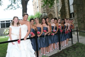 And this is a picture of my bridesmaids. These are some of the friends I mentioned the other day. People gave me a hard time about such a large bridal party, but truth be told, I could’ve had 5 or so more. What can I say, I love a lot of people!