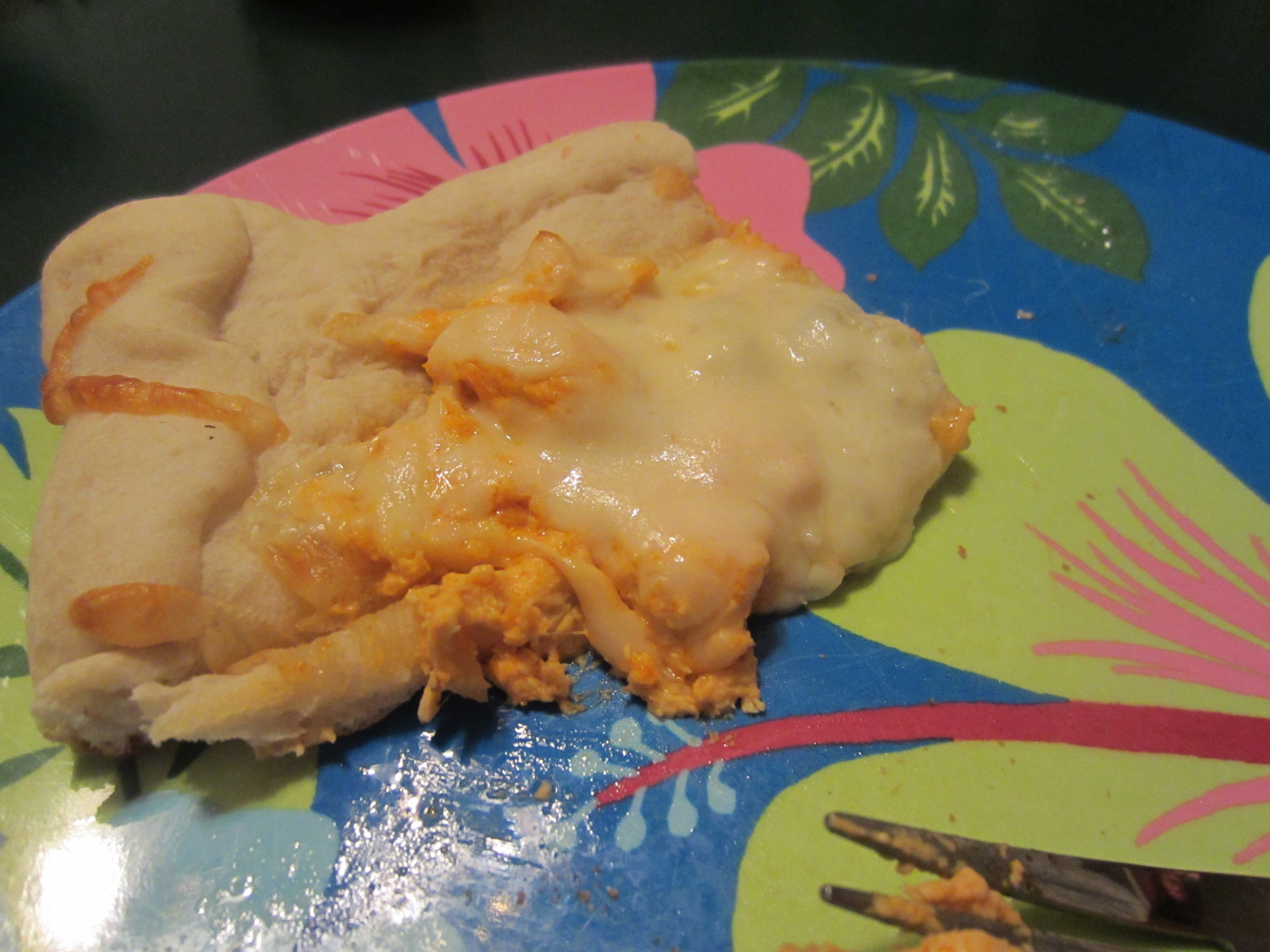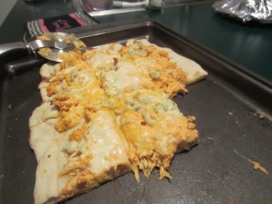 I had a Halloween Party last night that was a bit smaller than I had imagined, so I had made too much of this dip. I wanted to figure out how to eat it because I didn’t want to waste all of the ingredients, especially the chicken. I also had a Pillsbury Pizza Crust that I needed to cook today. So, a lightbulb went off. I spread the dip on the Pizza Crust, I topped with a bit more of the Colby-Jack shredded cheese, some parmesan cheese, some mozarella and a blue cheese crumbles.