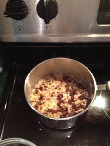 Today, I cleaned out my pantry and freezer. It was long overdue. I had a garbage bag and a half full of expired items. So, for lunch, I made some of the stuff I found that I had forgotten about. I kind of threw this stuff together, and it turned out DELICIOUS.