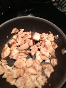 On the stove top, I used the frozen, already cooked, chicken cubes, and warmed them with some black beans.