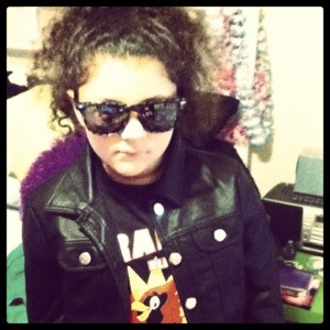 One of her Easter gifts was a pleather jacket that she really wanted. My mom sent it to her, and she was THRILLED. This is Ava modeling it for me.