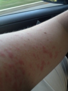 I woke up the next day and checked out my thighs and realized the rash had faded a bit. Good news!! Then I looked down to my ankles and they were COVERED in this rash.