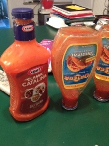 It is one part Taco Sauce to one part Catalina dressing. I use classic Catalina because fat free is gross.