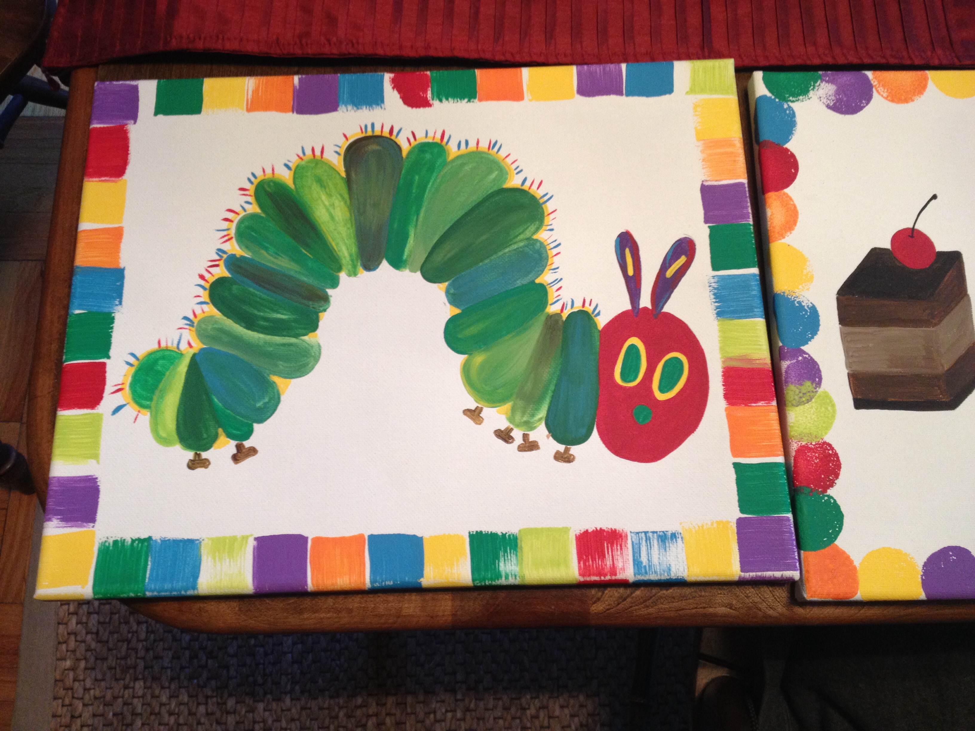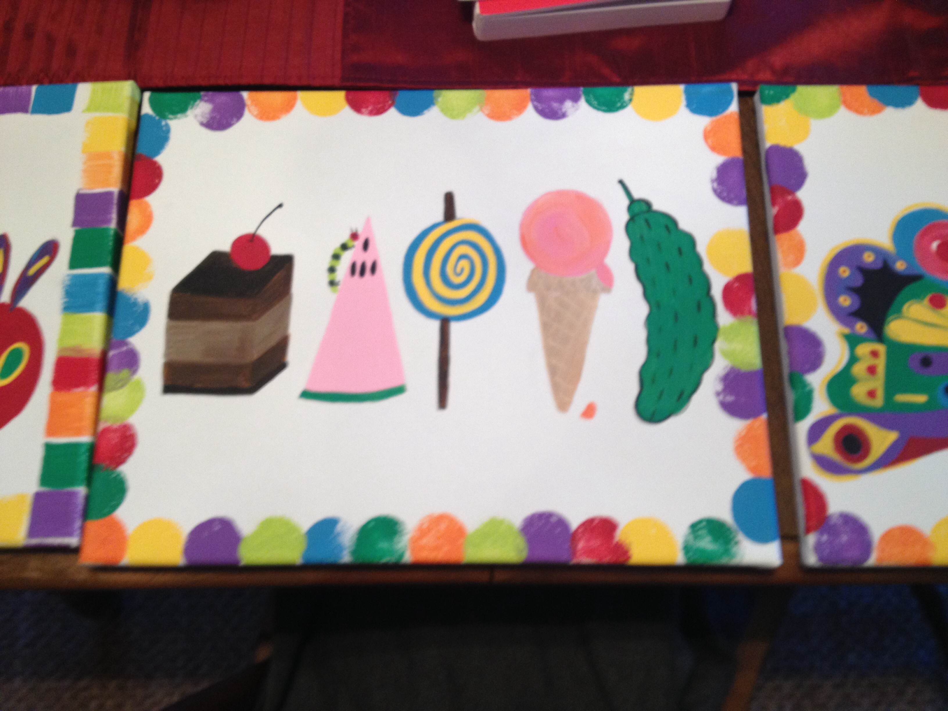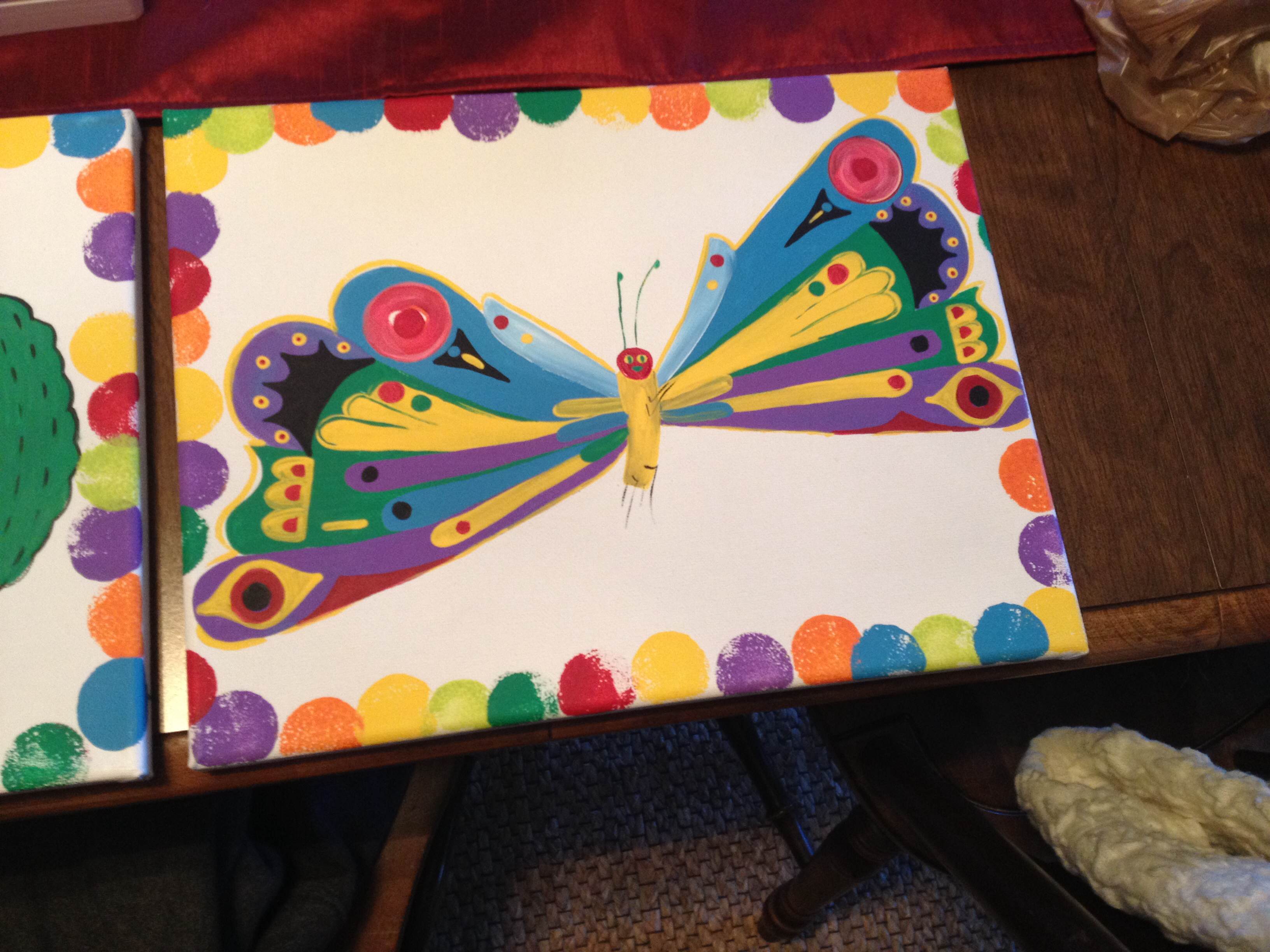 Also, I ordered canvases from Etsy for the nursery.  Our theme is Very Hungry Caterpillar, and I loved these canvases online.  But, I was nervous to get them and when I received them, they were even more beautiful than I imagined.  They were hand painted.