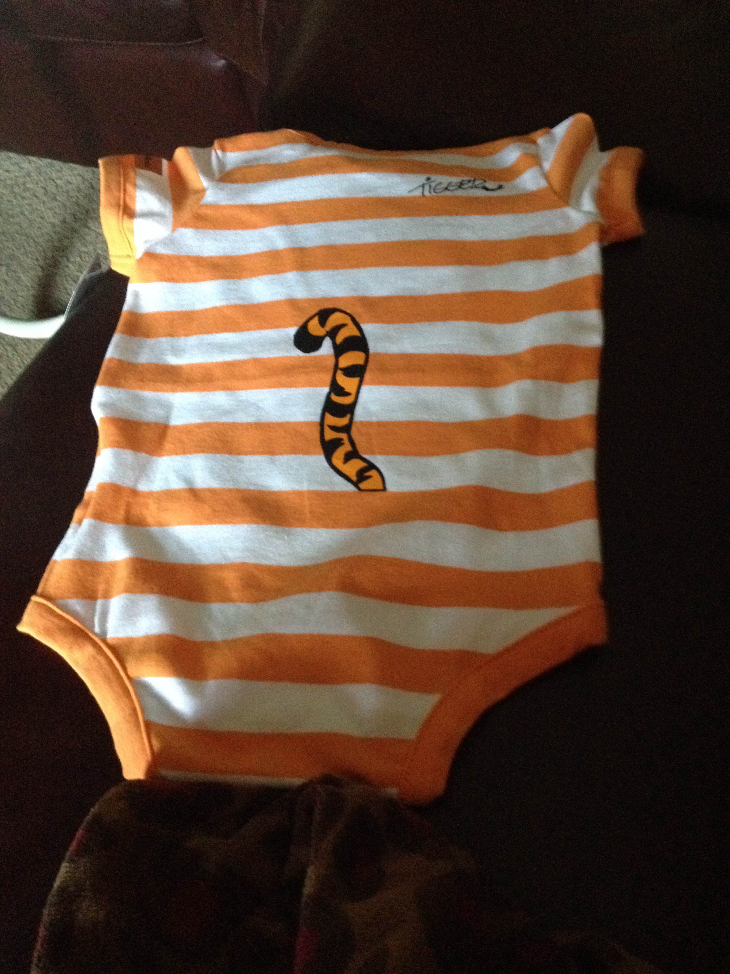 Luckily it is a 12 months onesie, so it might be around a little! But the ones I just got from my dad are 0-3 mos, so I know he/she will grow out of those in a minute!