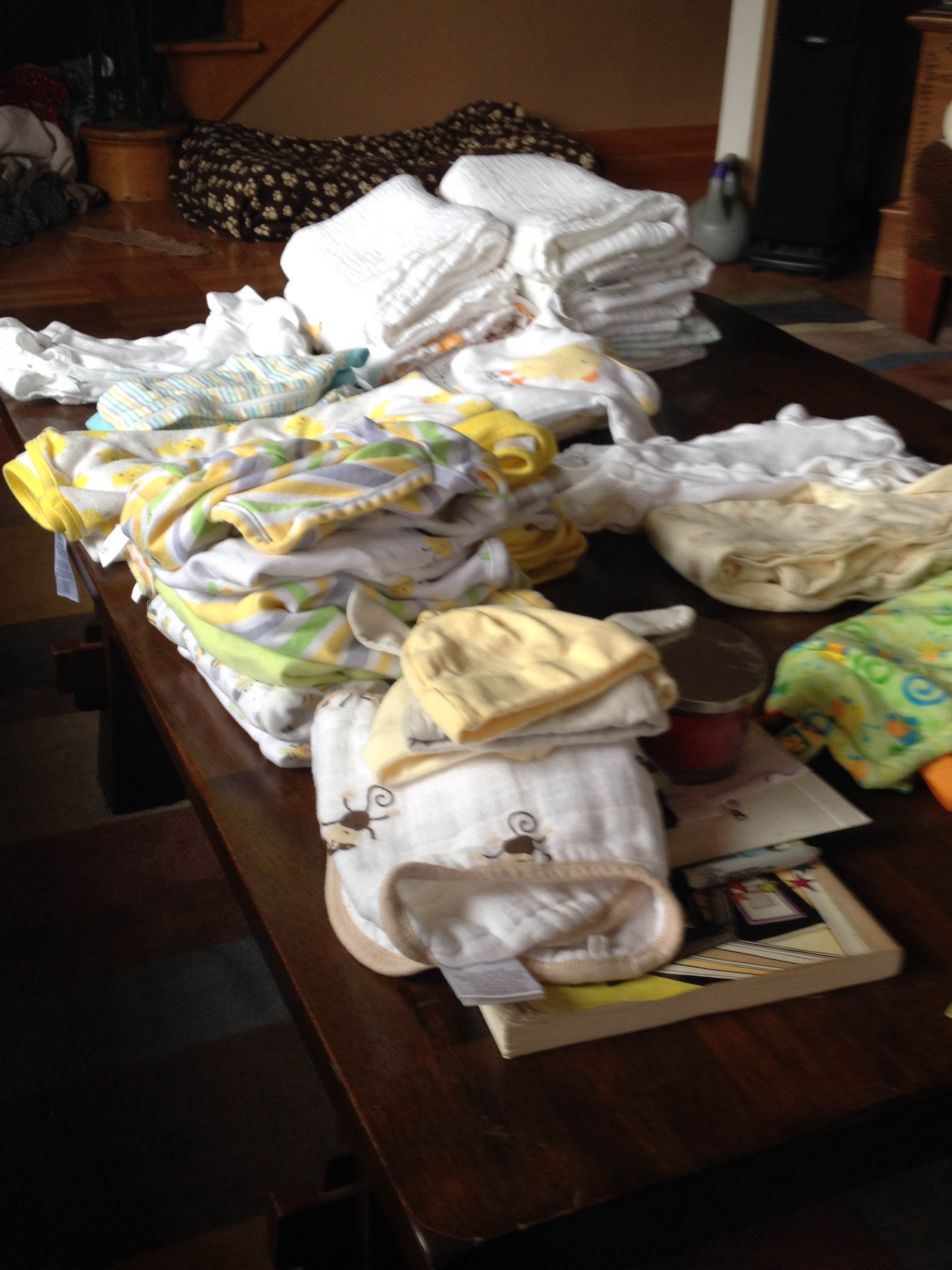 So, after our little scare on Monday, my mom and I decided that we needed to kick it into high gear as far as getting the nursery ready, and washing all of the clothes. That way, we will be as prepared as you can be for a newborn, when the time comes.