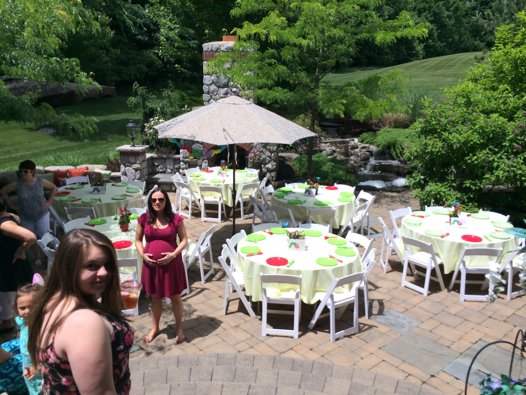 Well, this past weekend, my dad’s sister’s Carol and “Aunt B” (as I nicknamed her when I was little), threw this most amazing shower for me. They did so with the help of so many of my cousins, aunts, and second cousins. I know because I witnessed this amazing feat being put together. My Aunt Carol lives in the most beautiful house in Bath, Ohio and hosted the shower at her home. My mom, myself, and Ava went up Saturday night for the “pre=party” or food preparation part of the shower. Many of my aunts, cousins, and second cousins came for the party and helped until late in the evening.