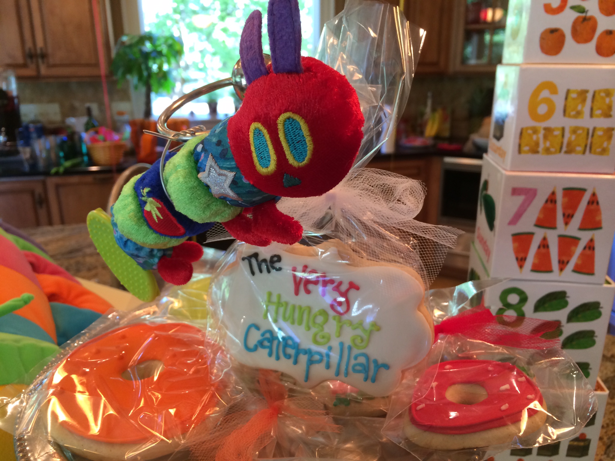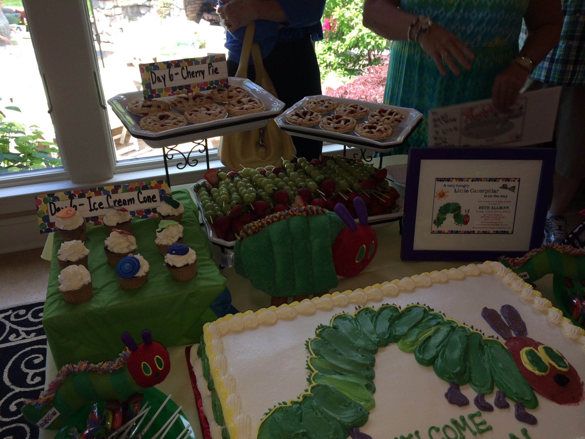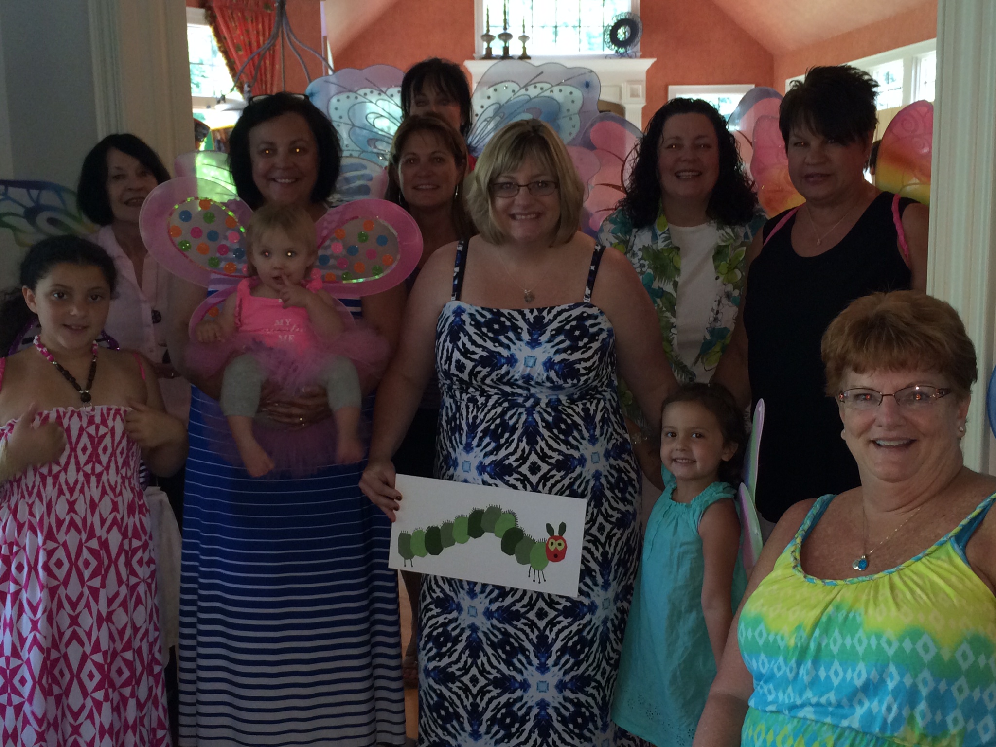 My nursery is a Very Hungry Caterpillar theme, and they took this theme and did amazing things with it. It started with me coming down the steps, and seeing my aunts with butterfly wings on….