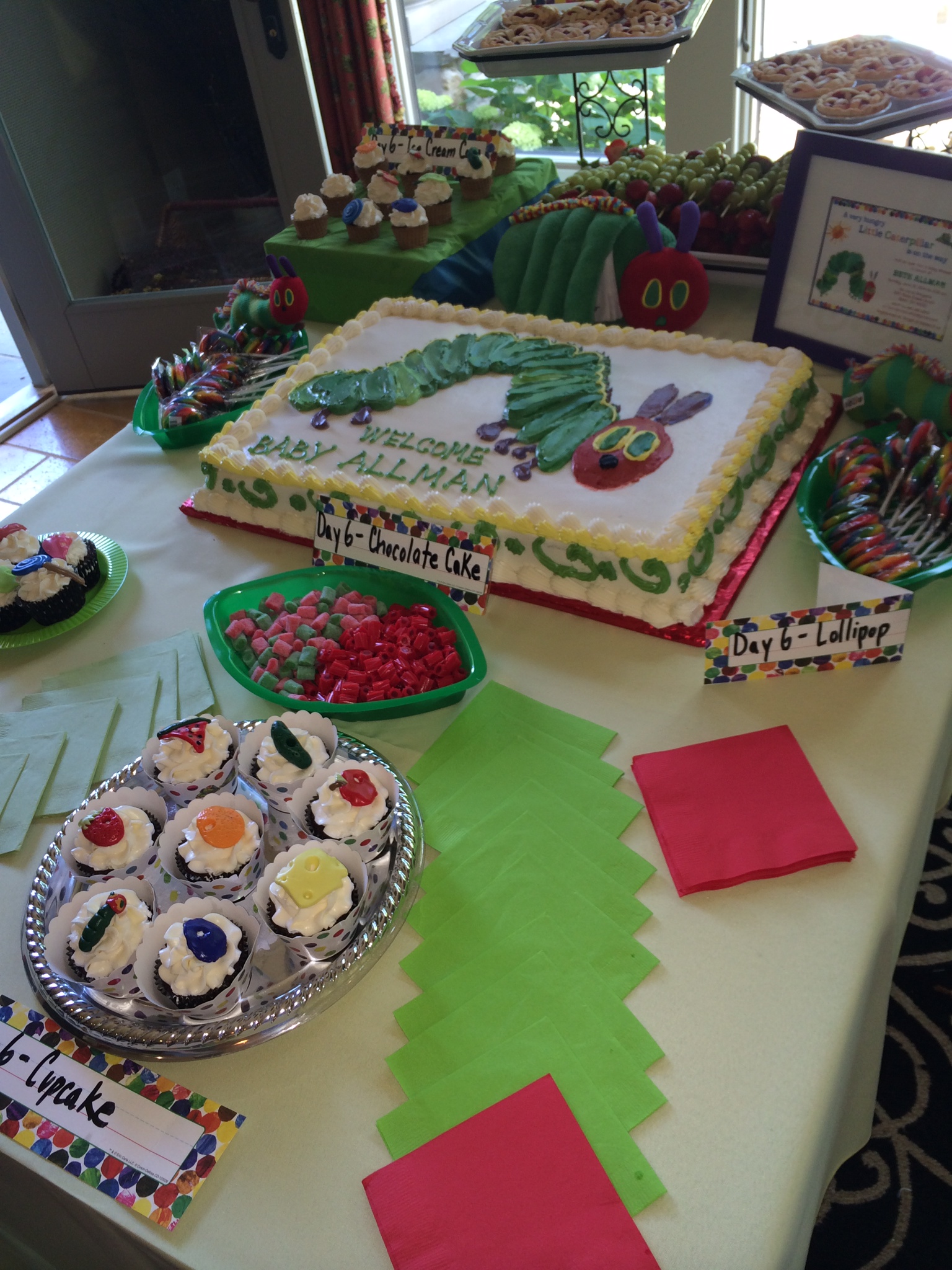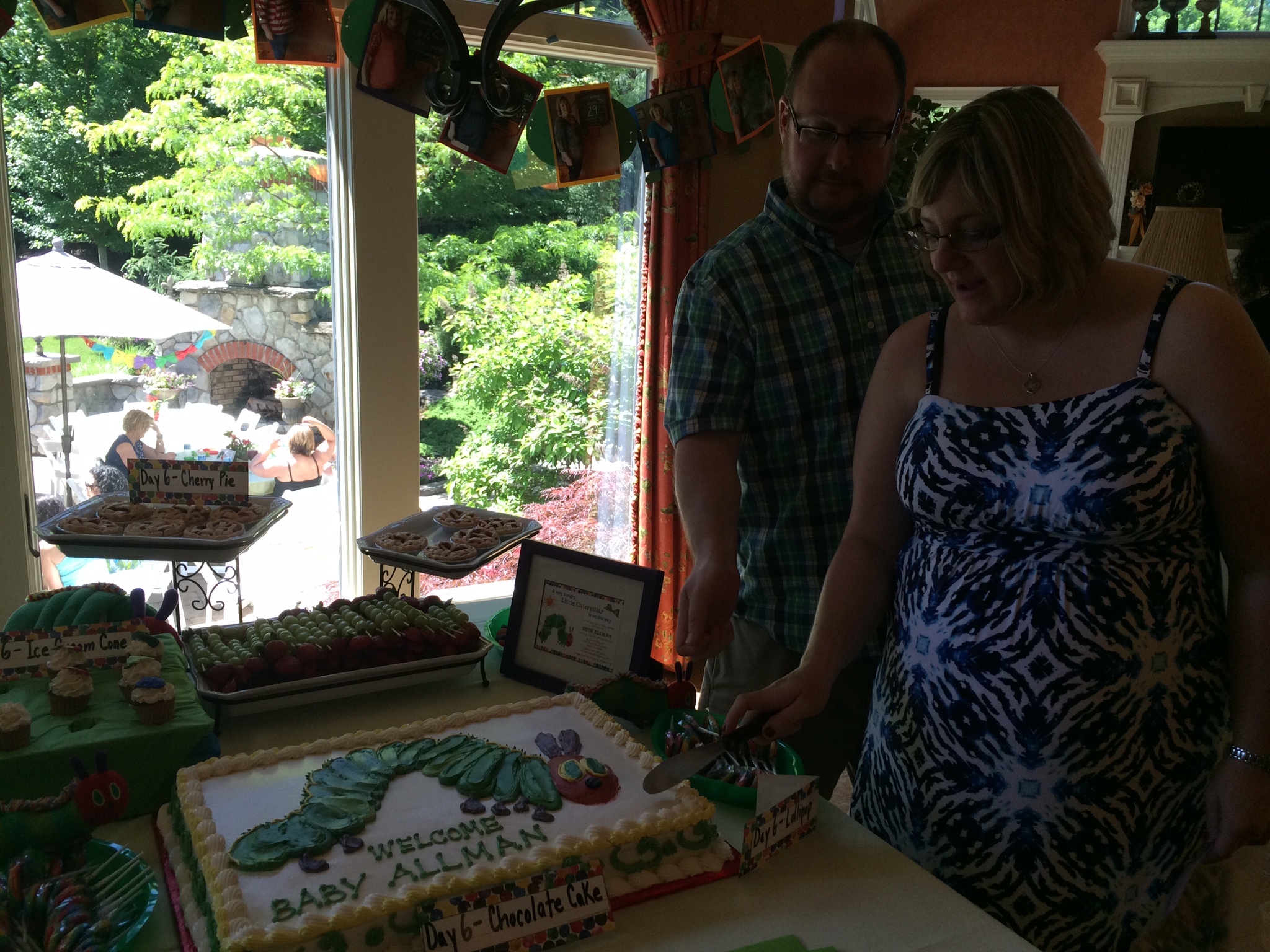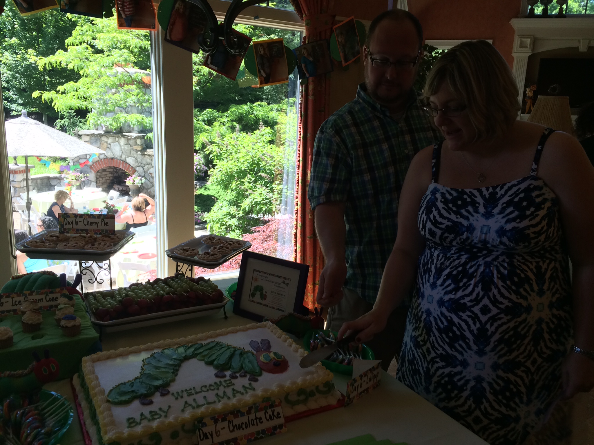 My nursery is a Very Hungry Caterpillar theme, and they took this theme and did amazing things with it. It started with me coming down the steps, and seeing my aunts with butterfly wings on….