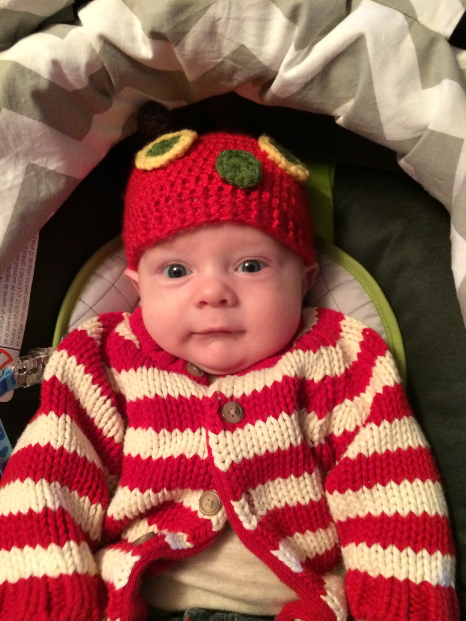 I know! That is a hand me down sweater that was Natalie’s!!! And the hat was made my Craig’s friend from work.