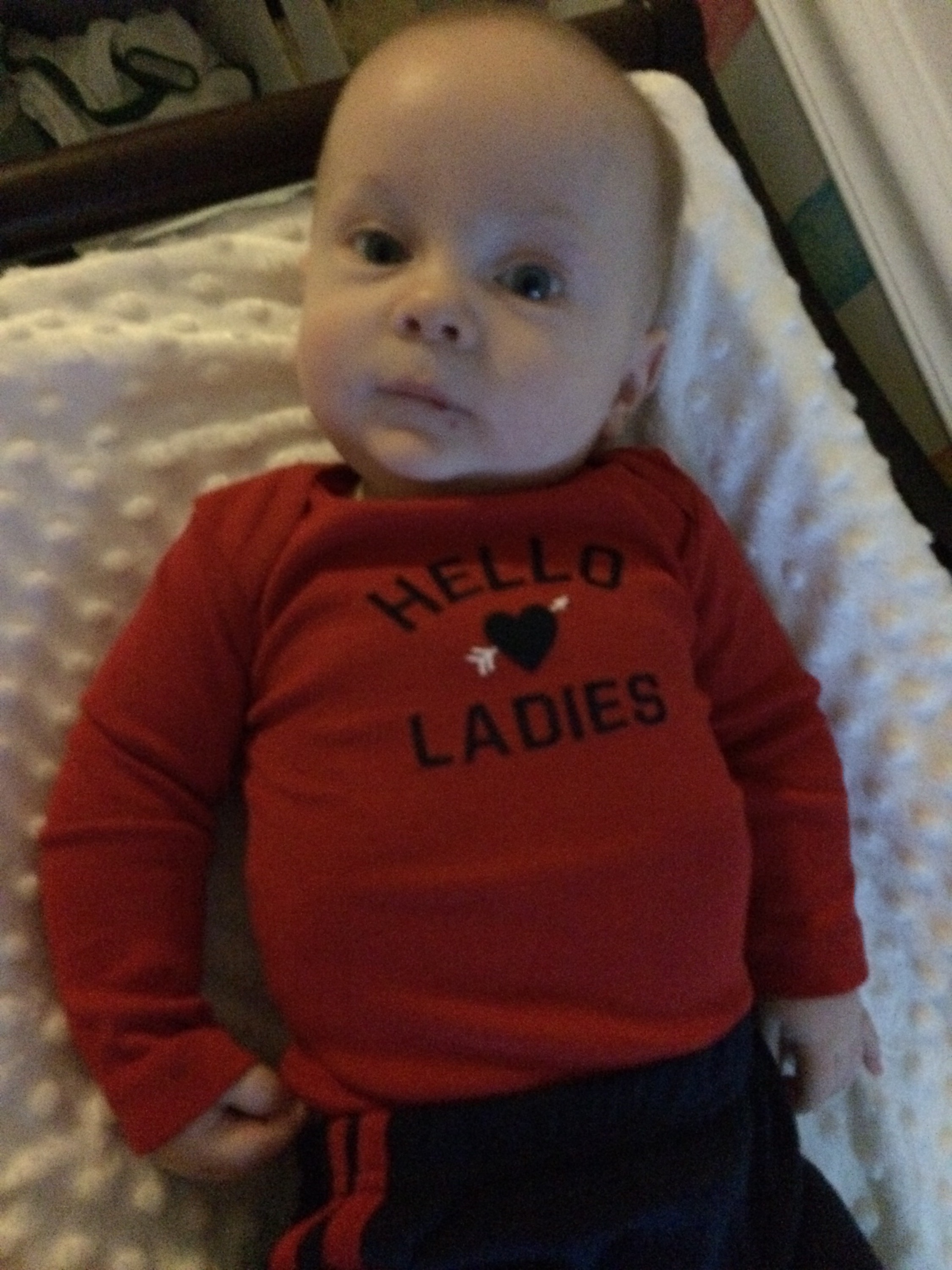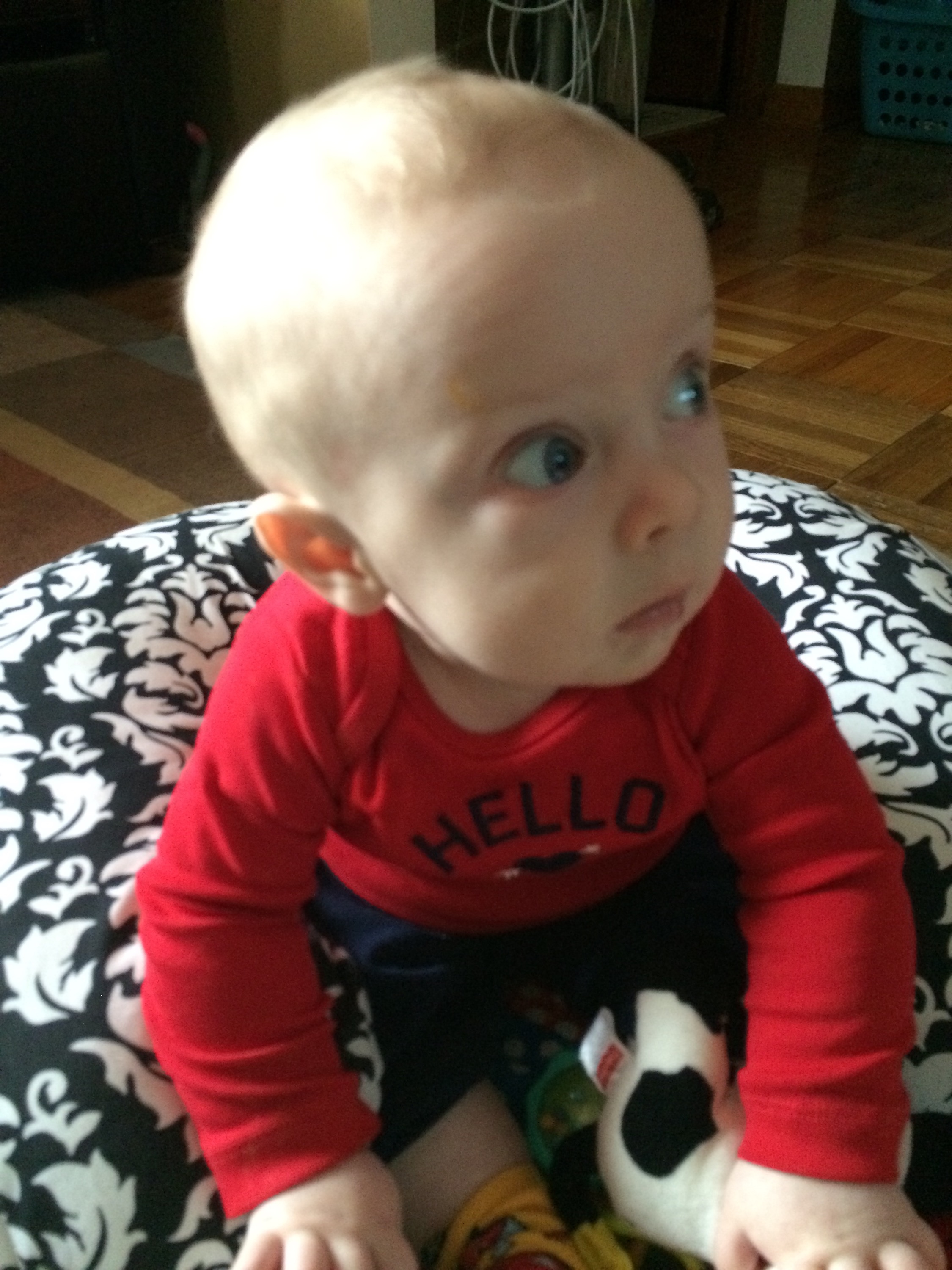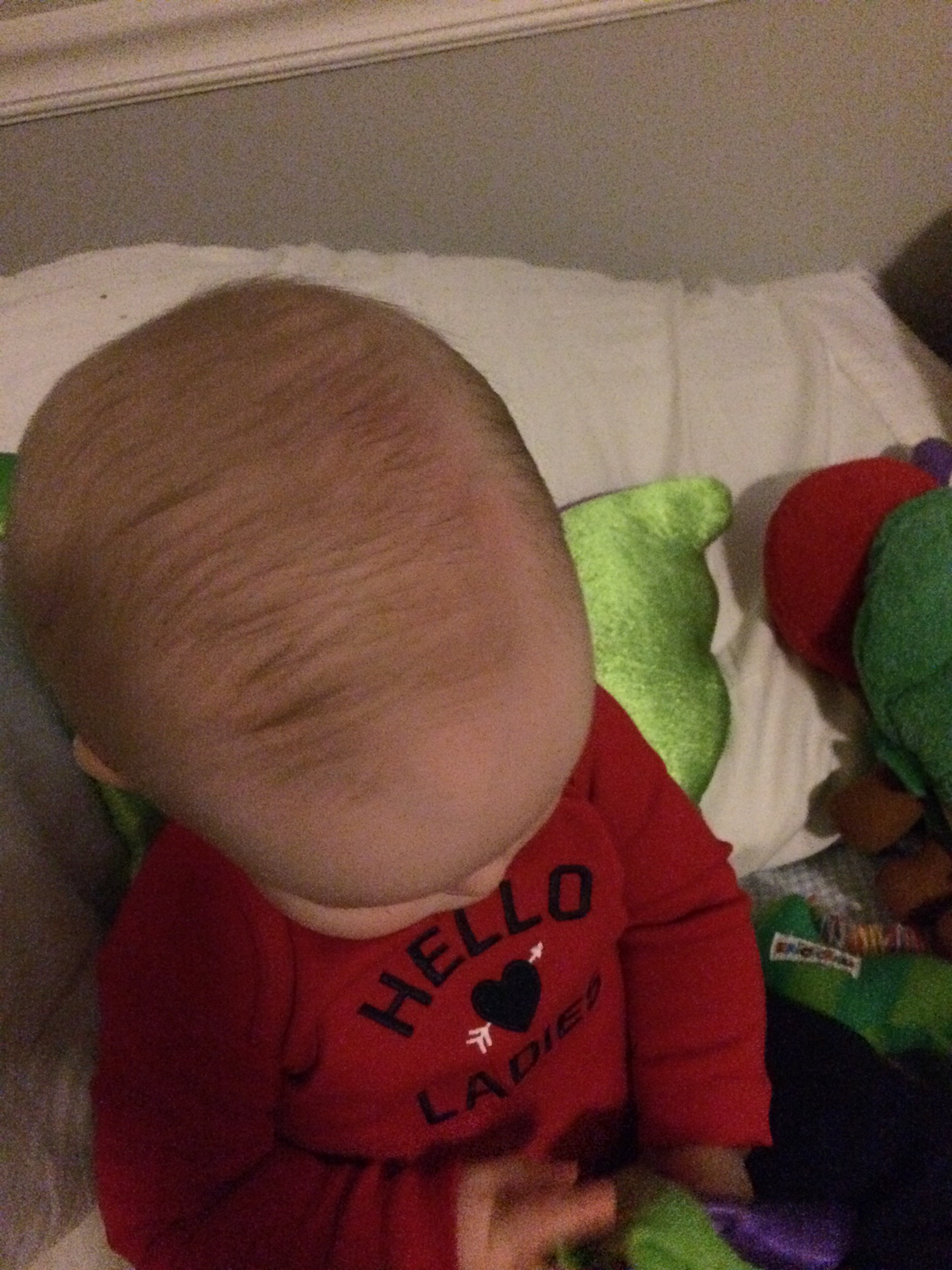I love to comb Henry’s hair to the side and use baby lotion as styling gel.