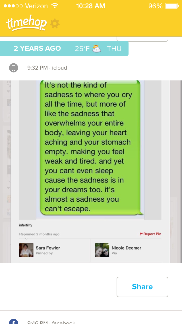 I was profoundly sad. I found this quote about infertility on Pinterest and it had summed up how I was feeling. The joy had been sucked out of every thing in my life.