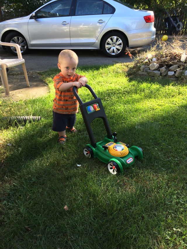 The newest thing I like to do with Henry is take him in our backyard and let him play. He loves it and it really tires him out.