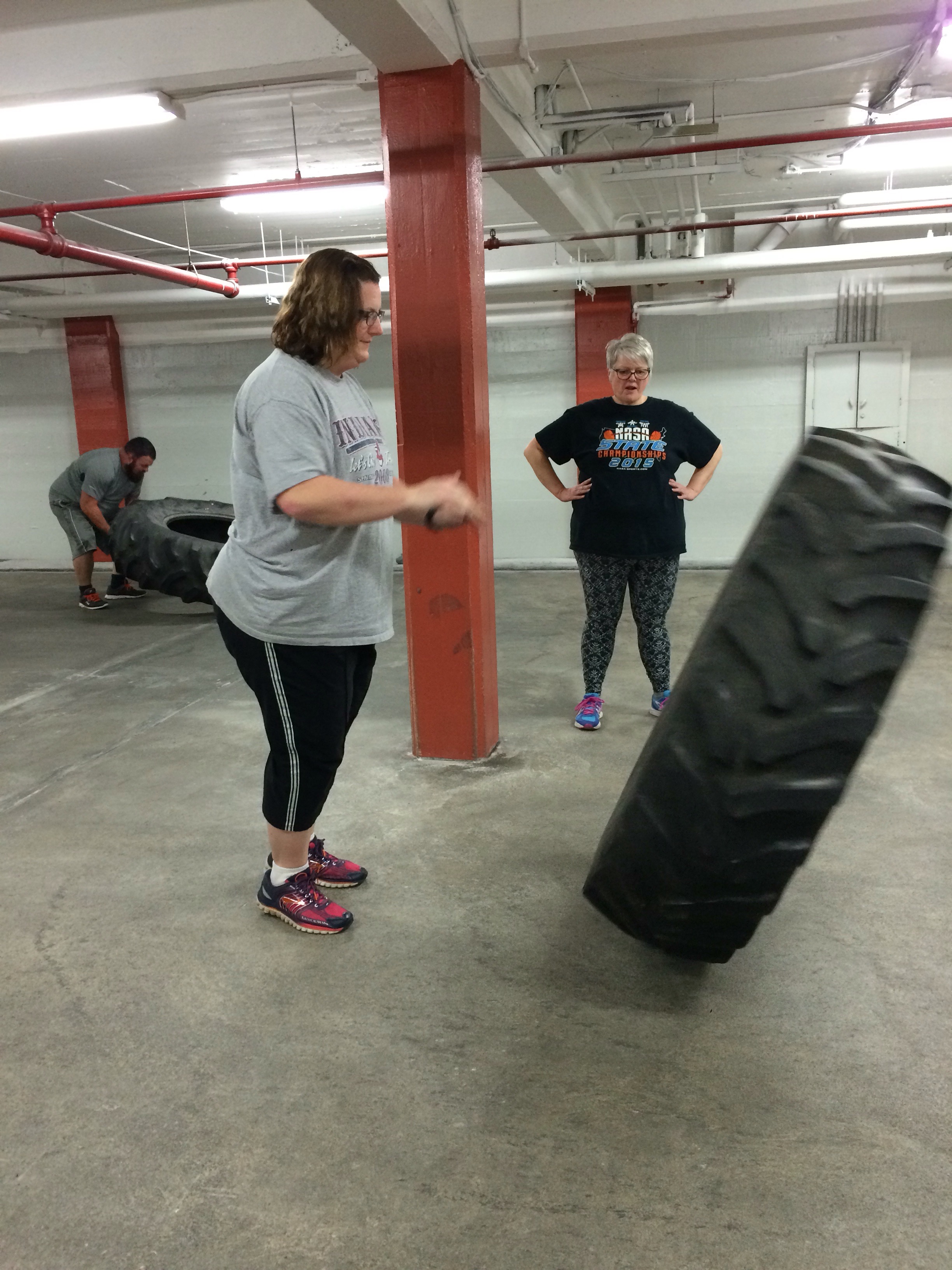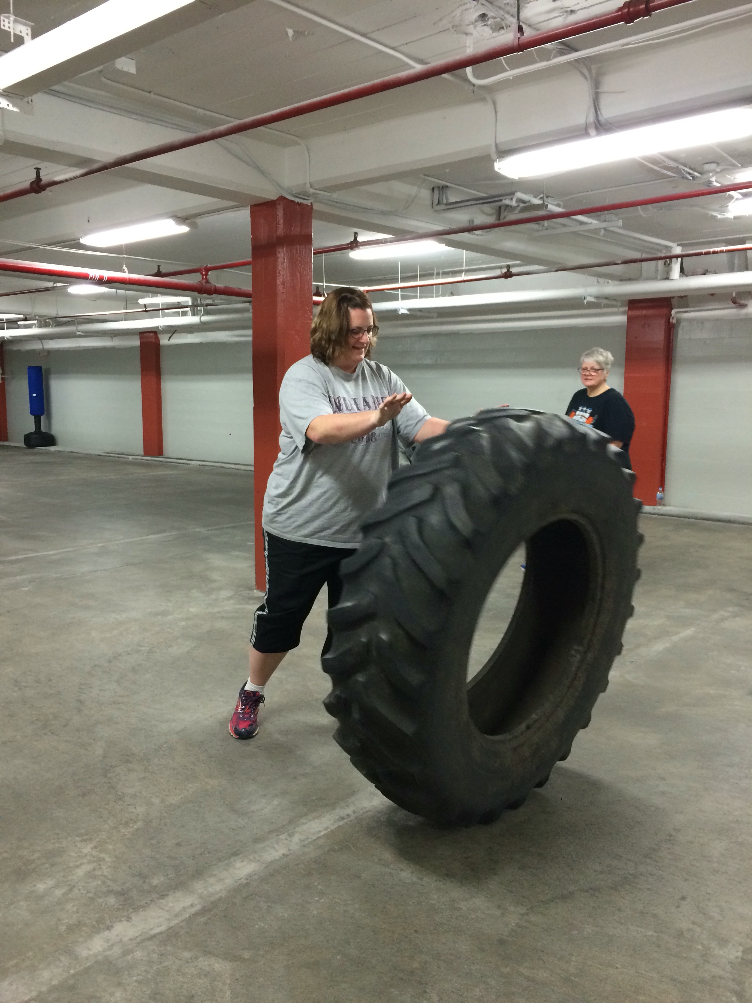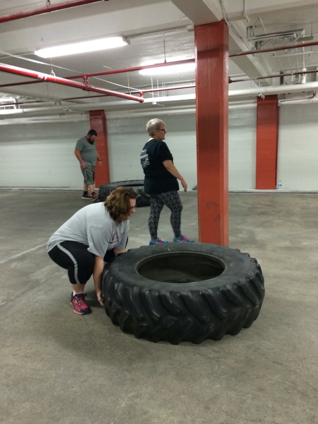 I knew when I embarked on this journey I would have to leave my comfort zone that I have created at this weight- and take risks. Well, joining this group at the gym certainly was out of my comfort zone at this time in my life. And tonight at class I flipped a freakin tire! I’ve always wanted to try it.