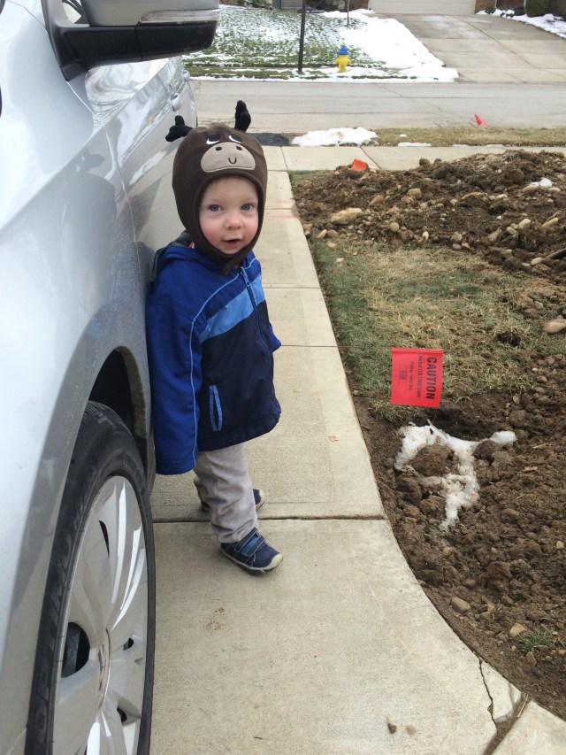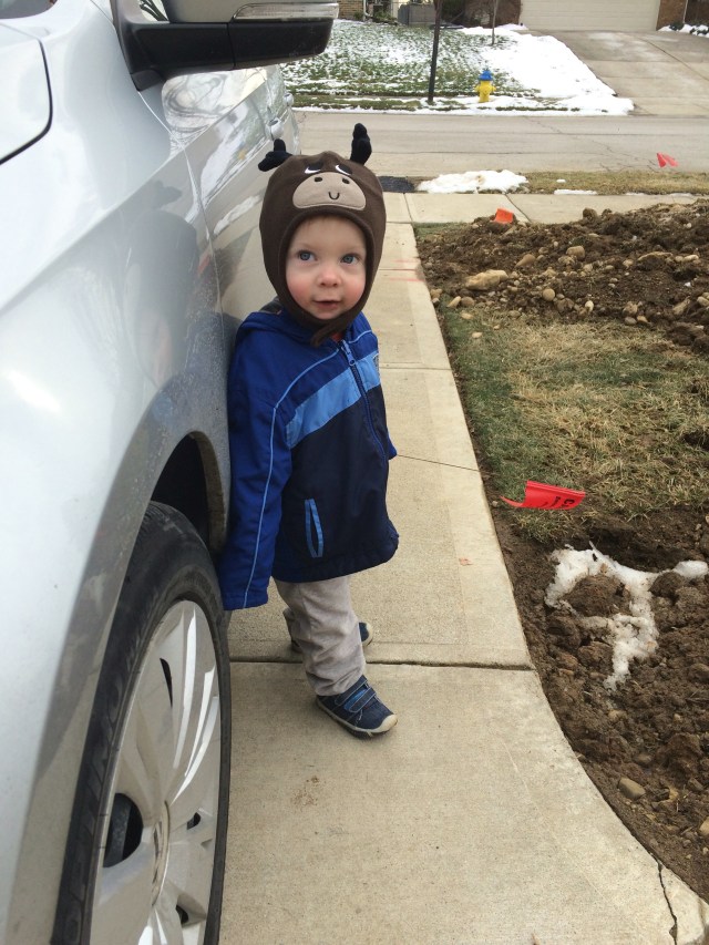 When I got to my parents to pick Henry up, he was playing outside with my dad. Here are some cute pictures.