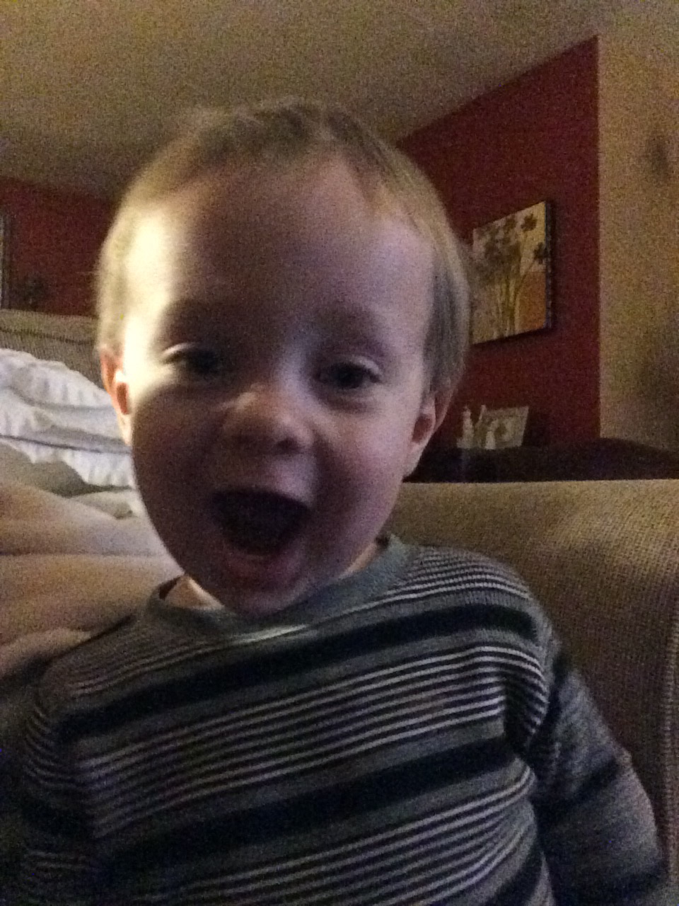 And here are some cute morning pictures. He’s always in such a good mood in the morning.