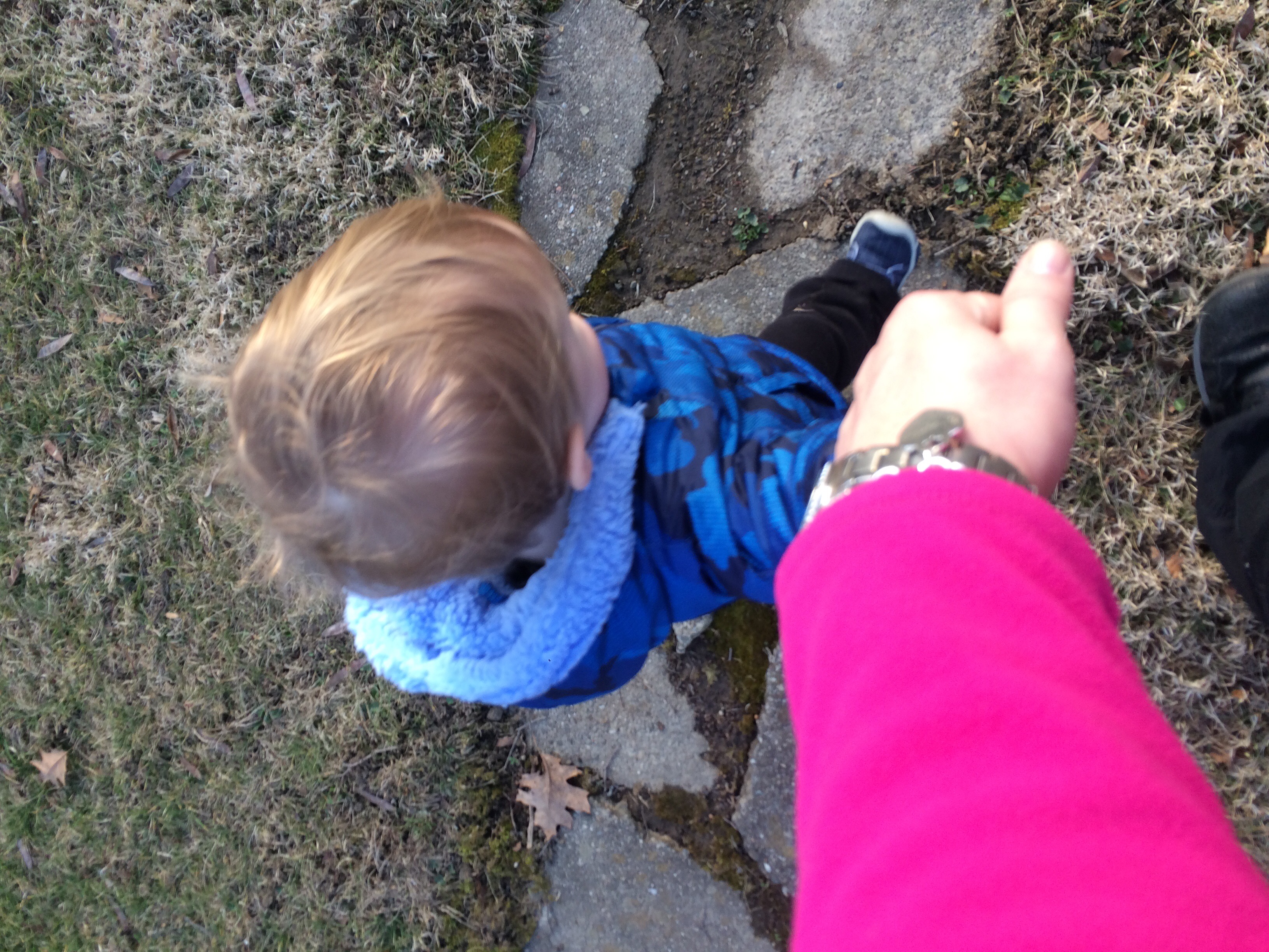 When Henry and I got home from my mom’s today, it was sunny and 55 and not windy. So, Henry and I went on a little walk. He walked by me on the sidewalk and I thought I might die from his cuteness. And when we would cross the street or get on some rough terrain he would hold my hand without arguing at all. So, naturally I took a million pictures.