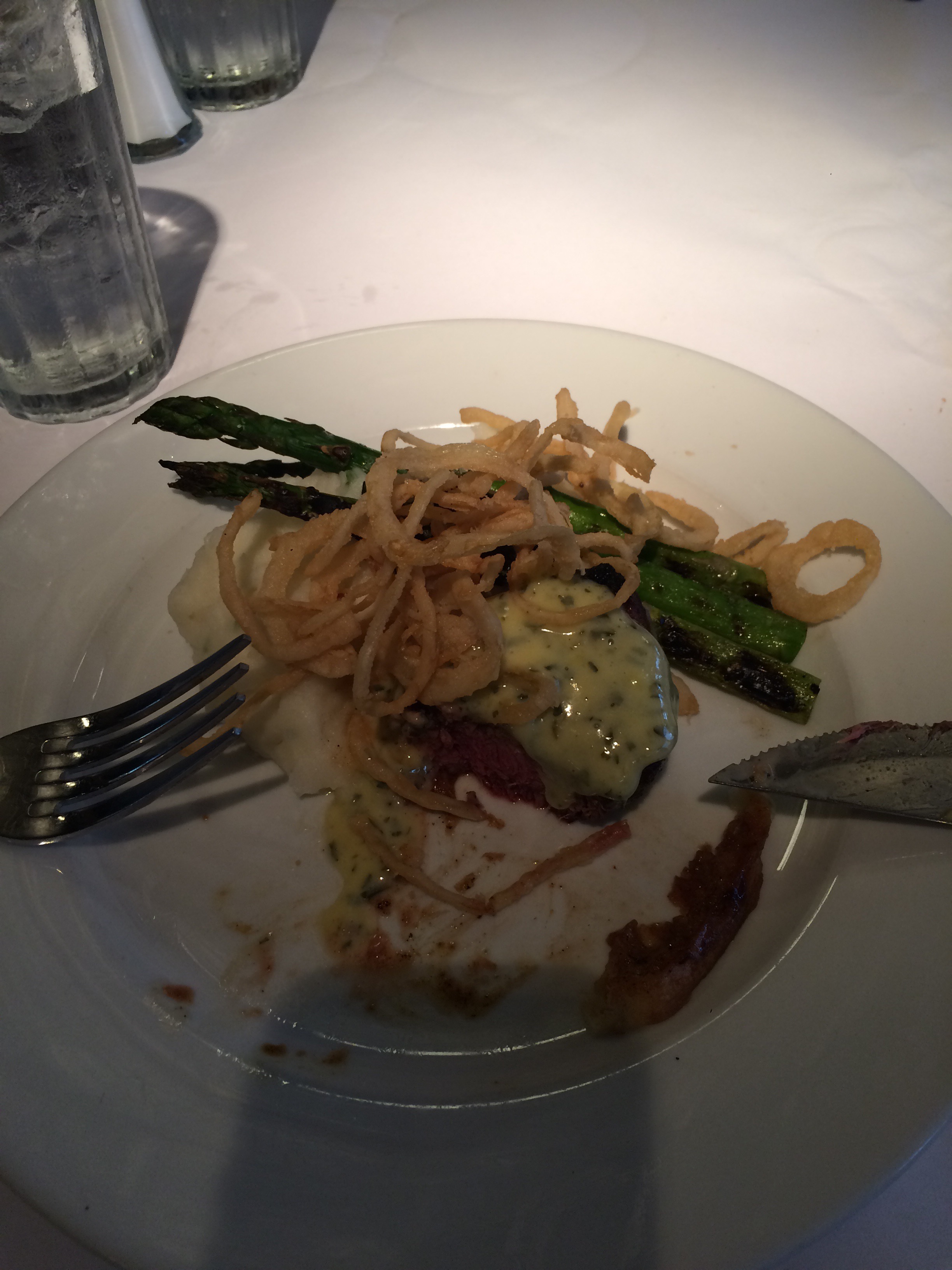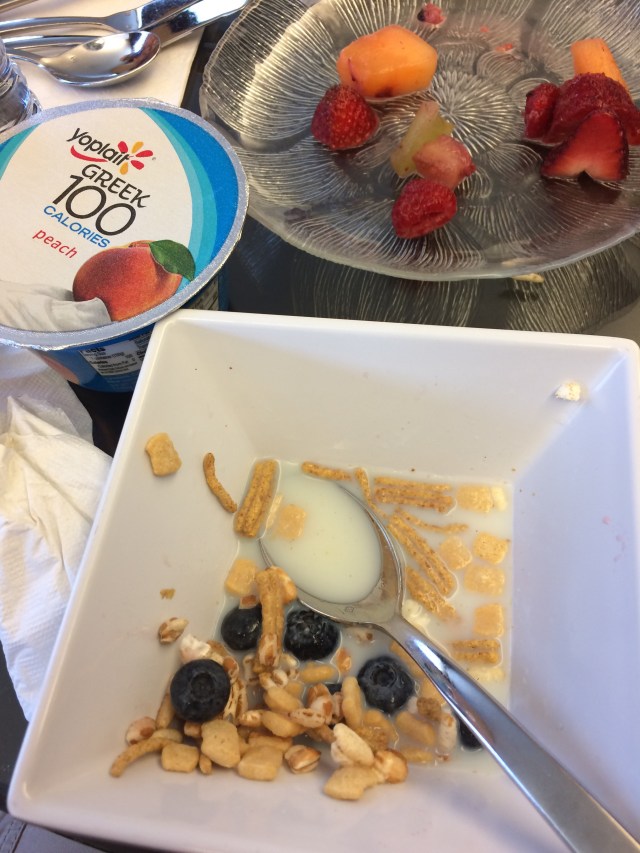 I ended up entering everything I ate and drank and it was TWO days worth of food. I felt gross. And guilty. And I can’t believe I ate like that all of the time. Blech. I was nervous that it would lead to a weekend bender of junk food, but this morning, at our free breakfast I got right back on track despite many delicious tempting foods.