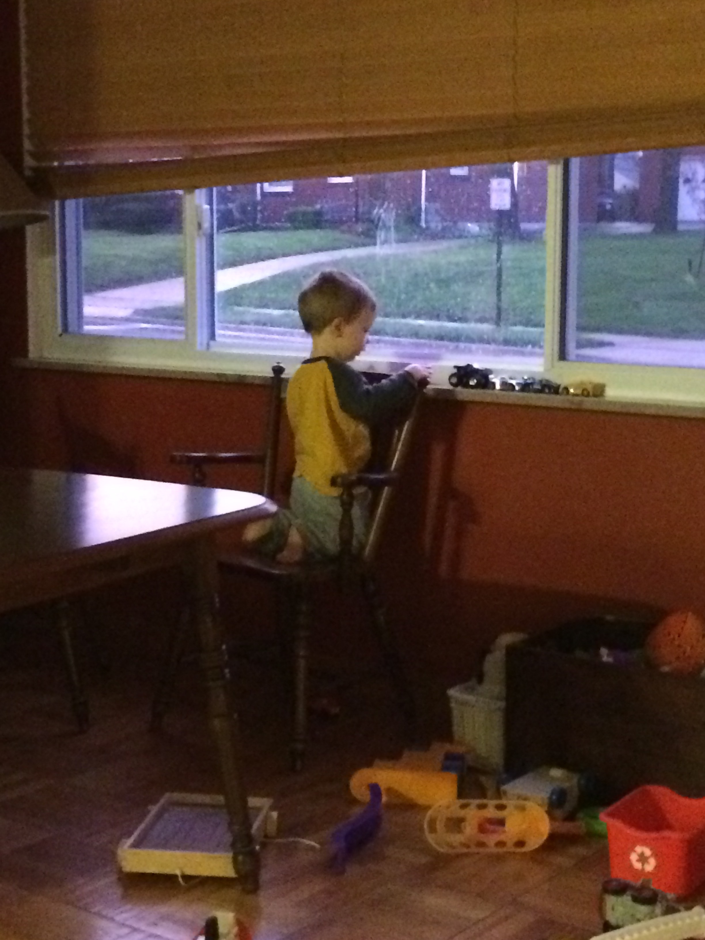 Here’s a picture of Henry doing his favorite thing. Looking out our side window at the cars playing with his cars. Excuse the mess. This is Henry’s world. We are just living in it. 😂