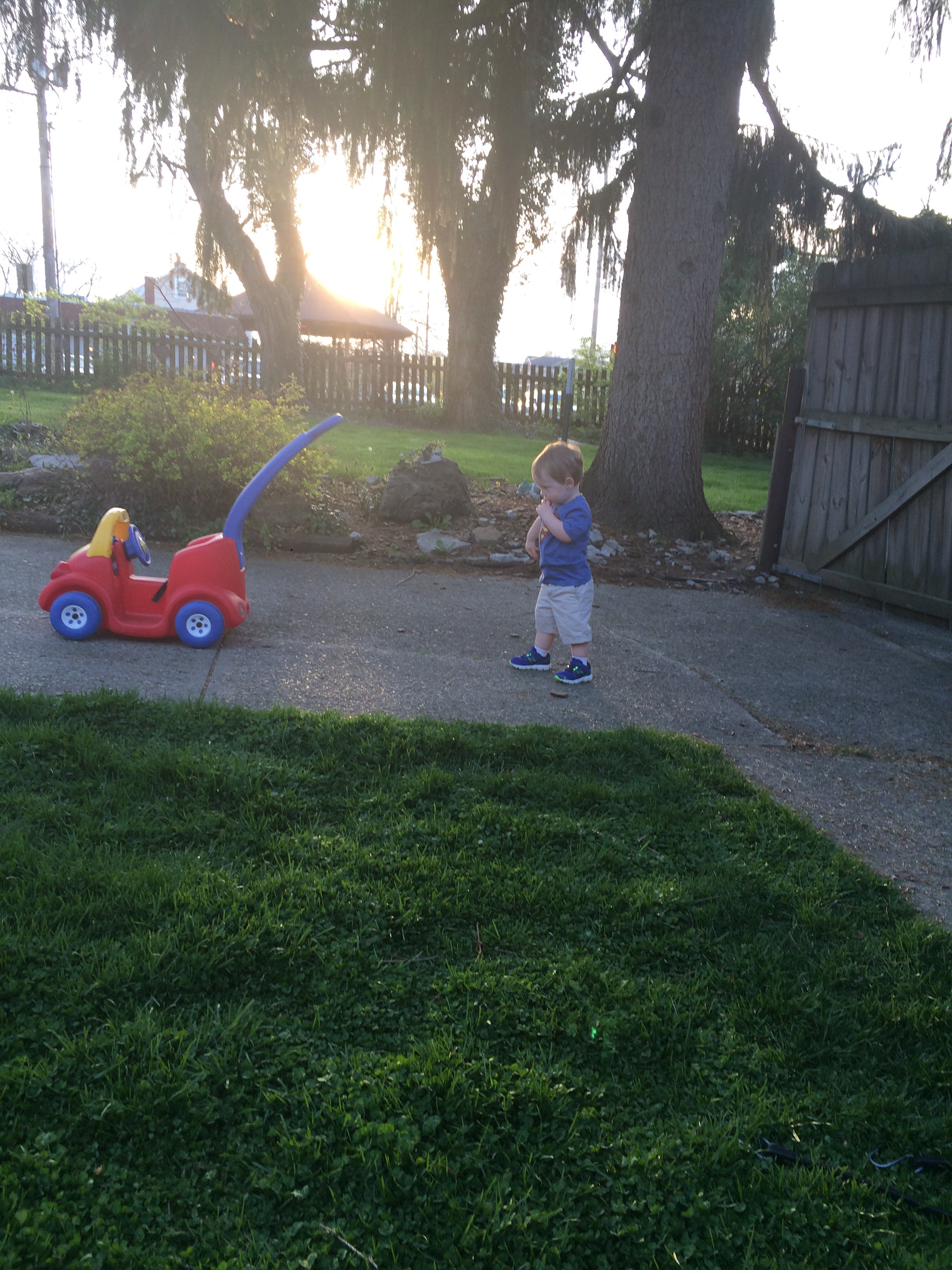 Henry and I played outside all afternoon and evening. We went on two walks, played ball, blew dandelions all over, and belly laughed. And I never got too tired or worn out. And I had so much fun. That is what this journey to health and fitness is all about.