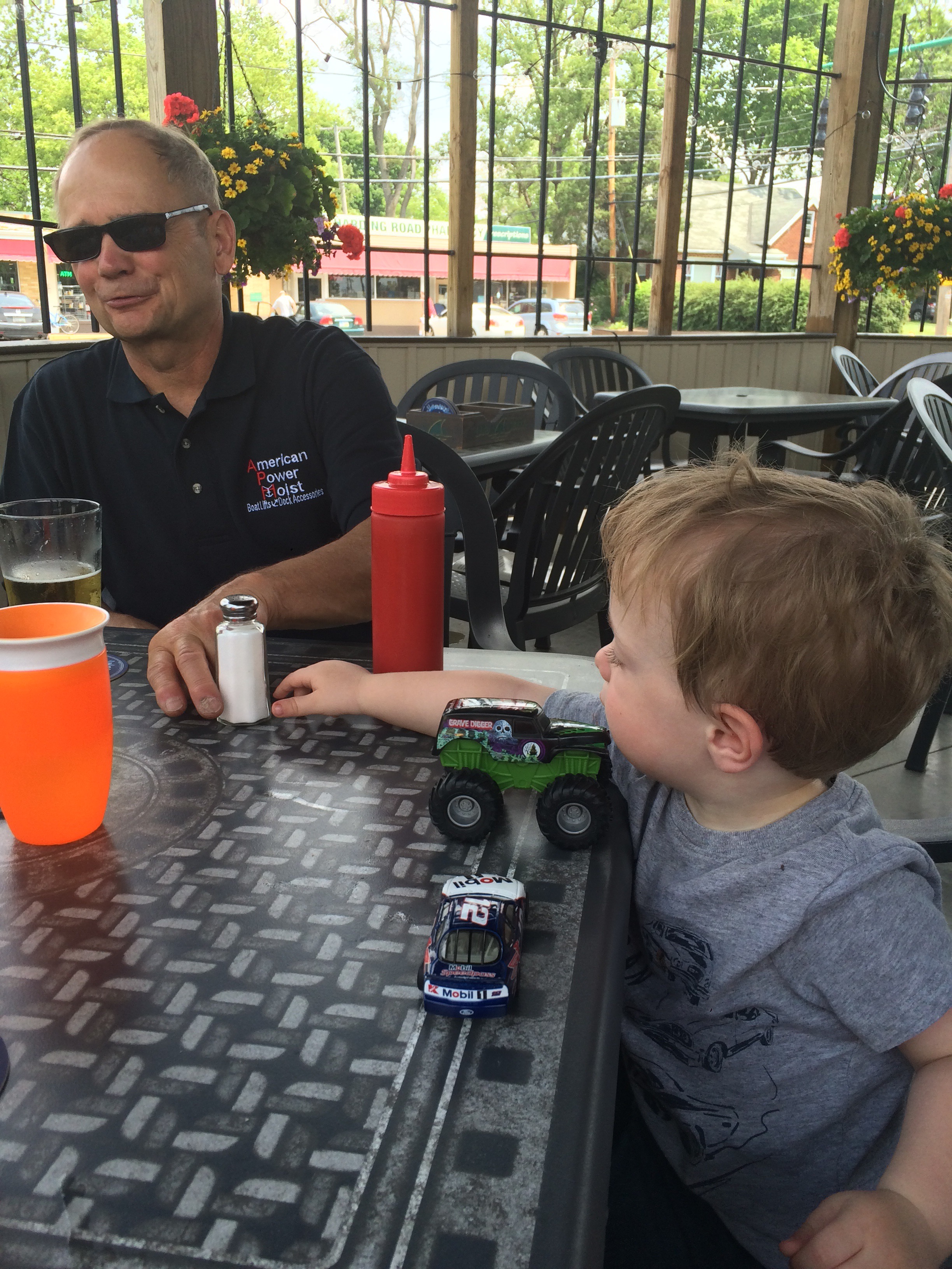 Anyway. Other than that we are having a great weekend. Craig is off all three days. Henry went with Craig and his parents to a car show that was happening in town and he loved it. Then we ate lunch at the restaurant across the street. They have outdoor seating. Henry was a good boy.