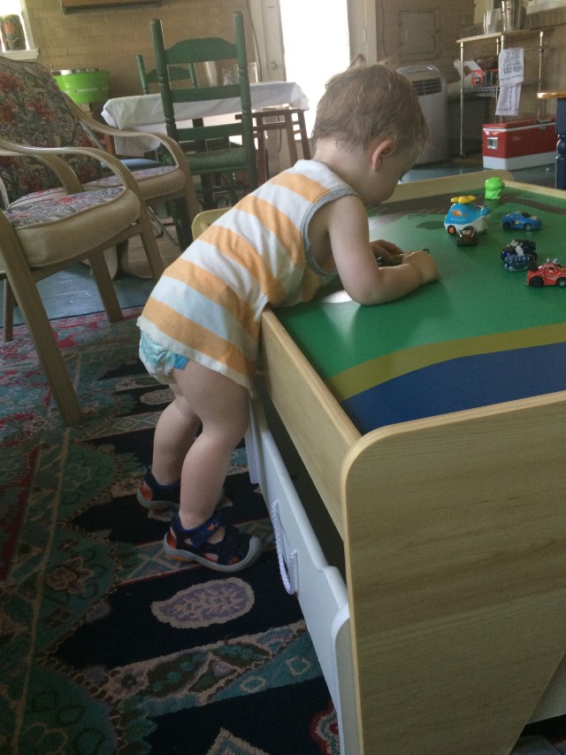 And playing outside in just a swim diaper and tank and about a gallon of sun screen.
