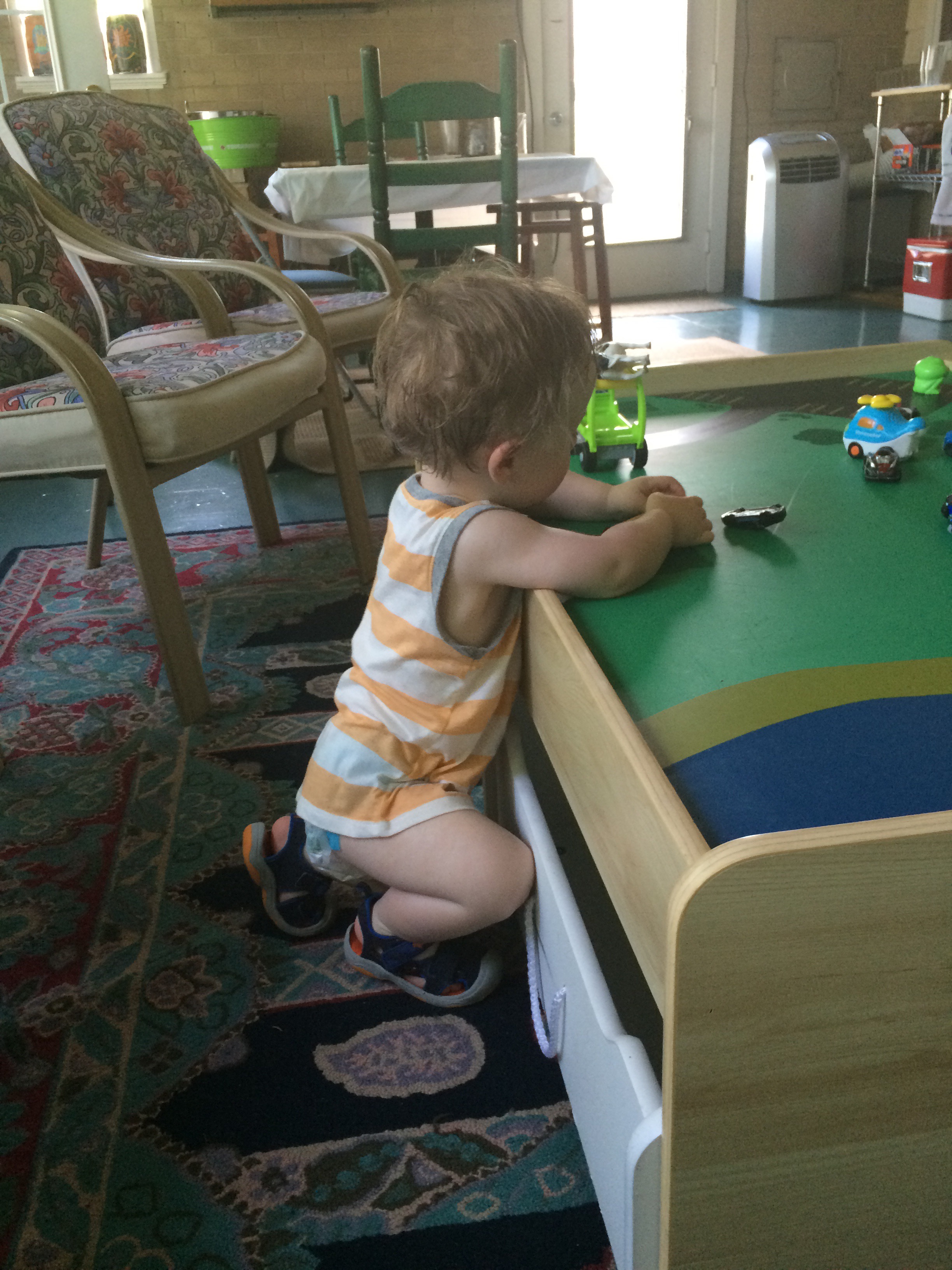 And playing outside in just a swim diaper and tank and about a gallon of sun screen.