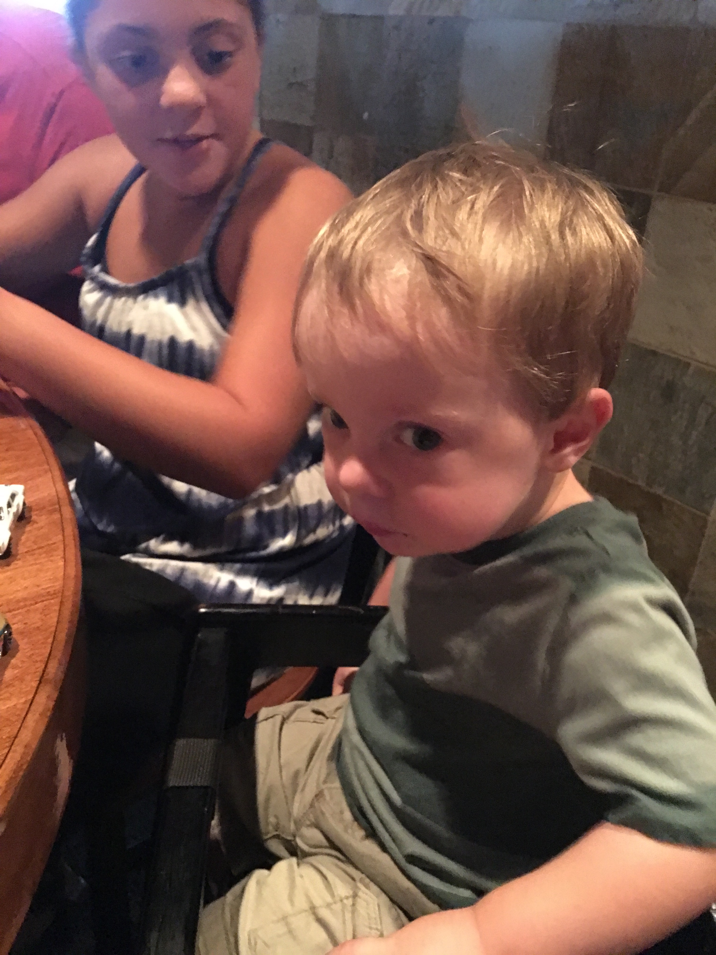 Then we went to a Japanese steak house and he was terrified. But he eventually braved it at the table and ate his French fries… Cautiously and suspiciously.