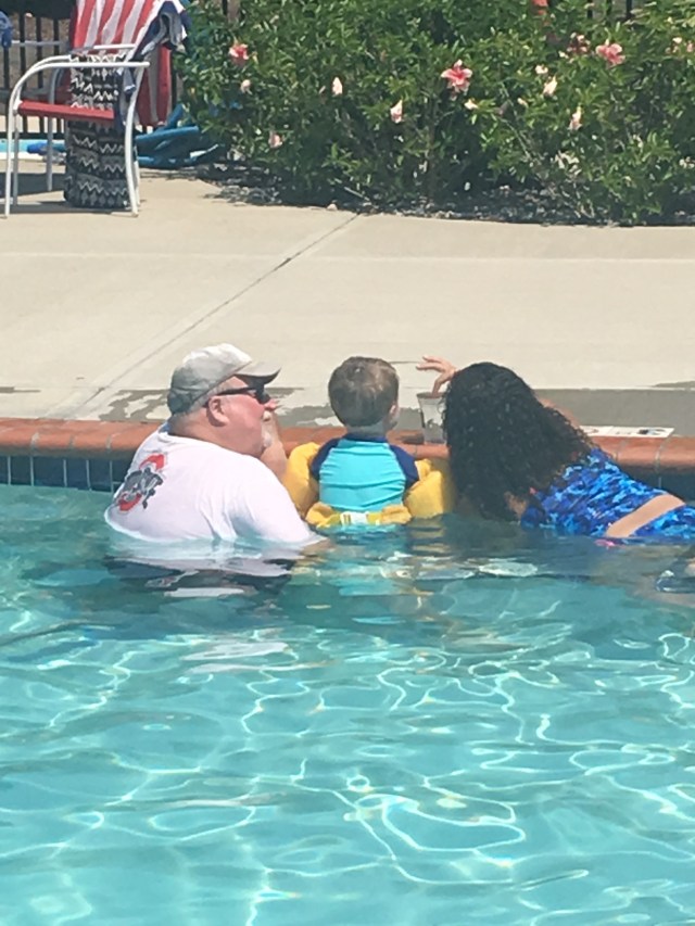 What are puddle jumpers? The Floatie he is wearing? That was Ava’s. Ha ha! He looks so cute in it.