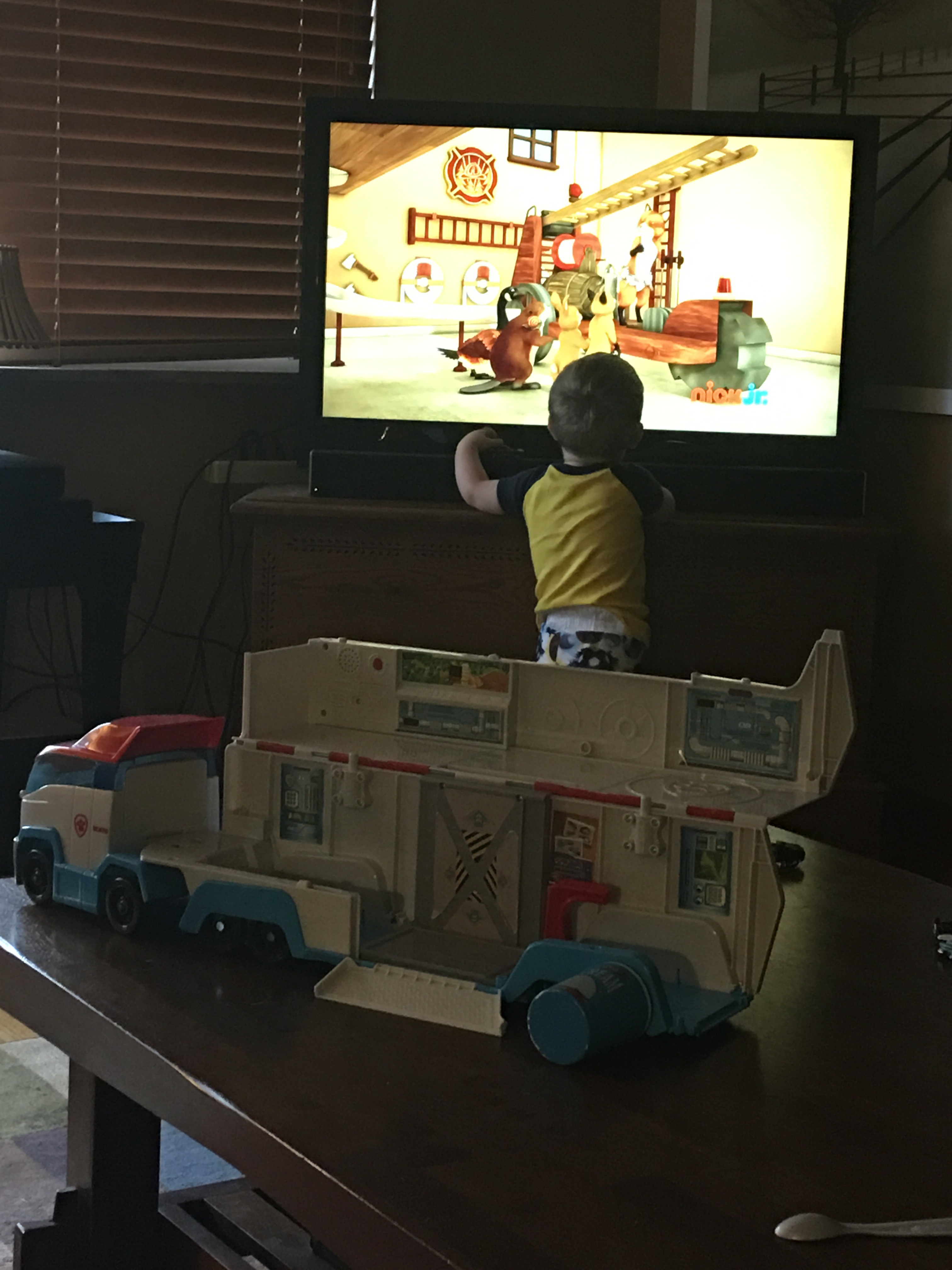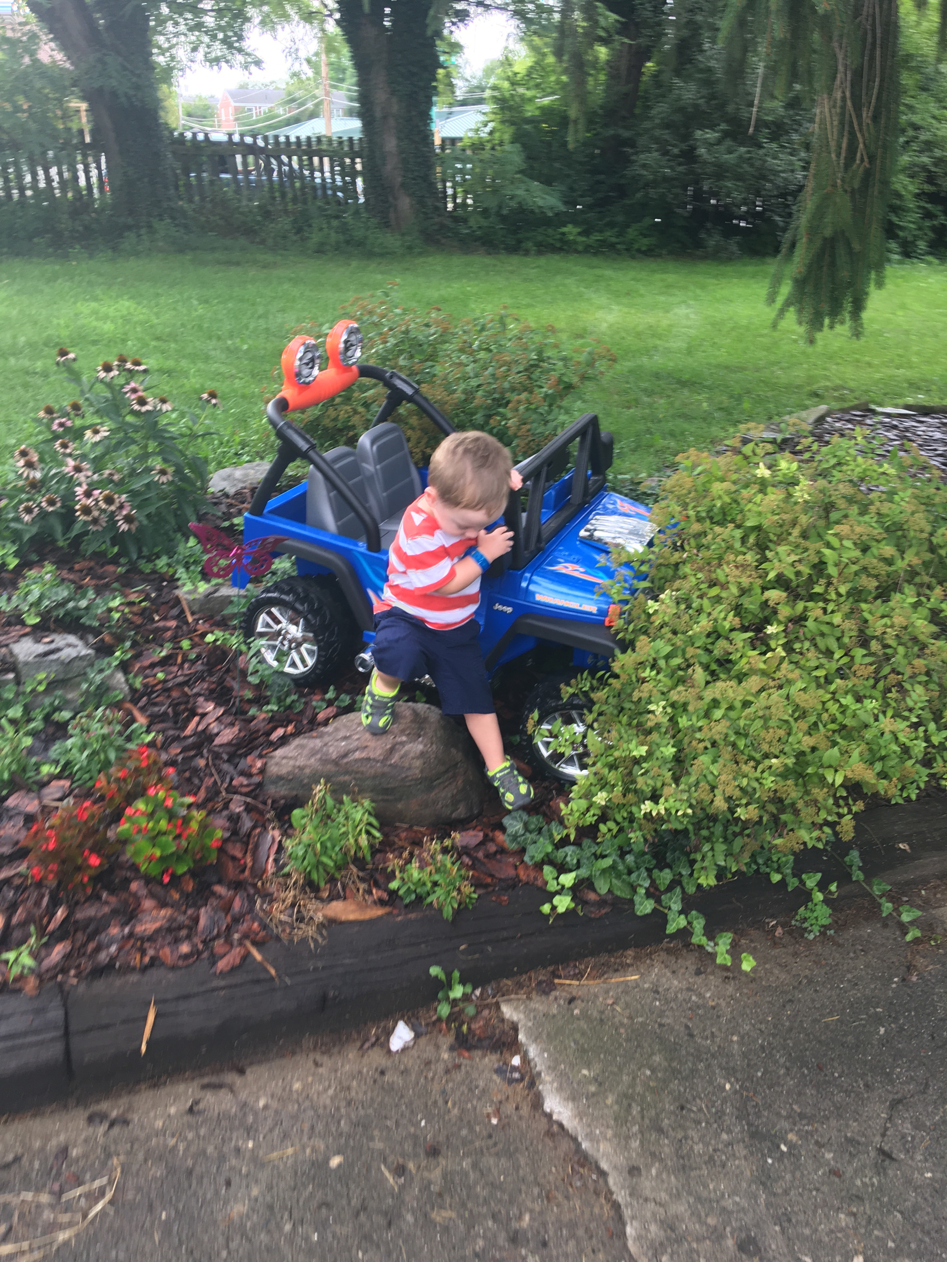Then we got home and Henry “drove” his jeep that he got from his grandparents for his birthday. He now has the hang of holding his foot on the gas, just not steering. So, I was a sweaty mess following him around.