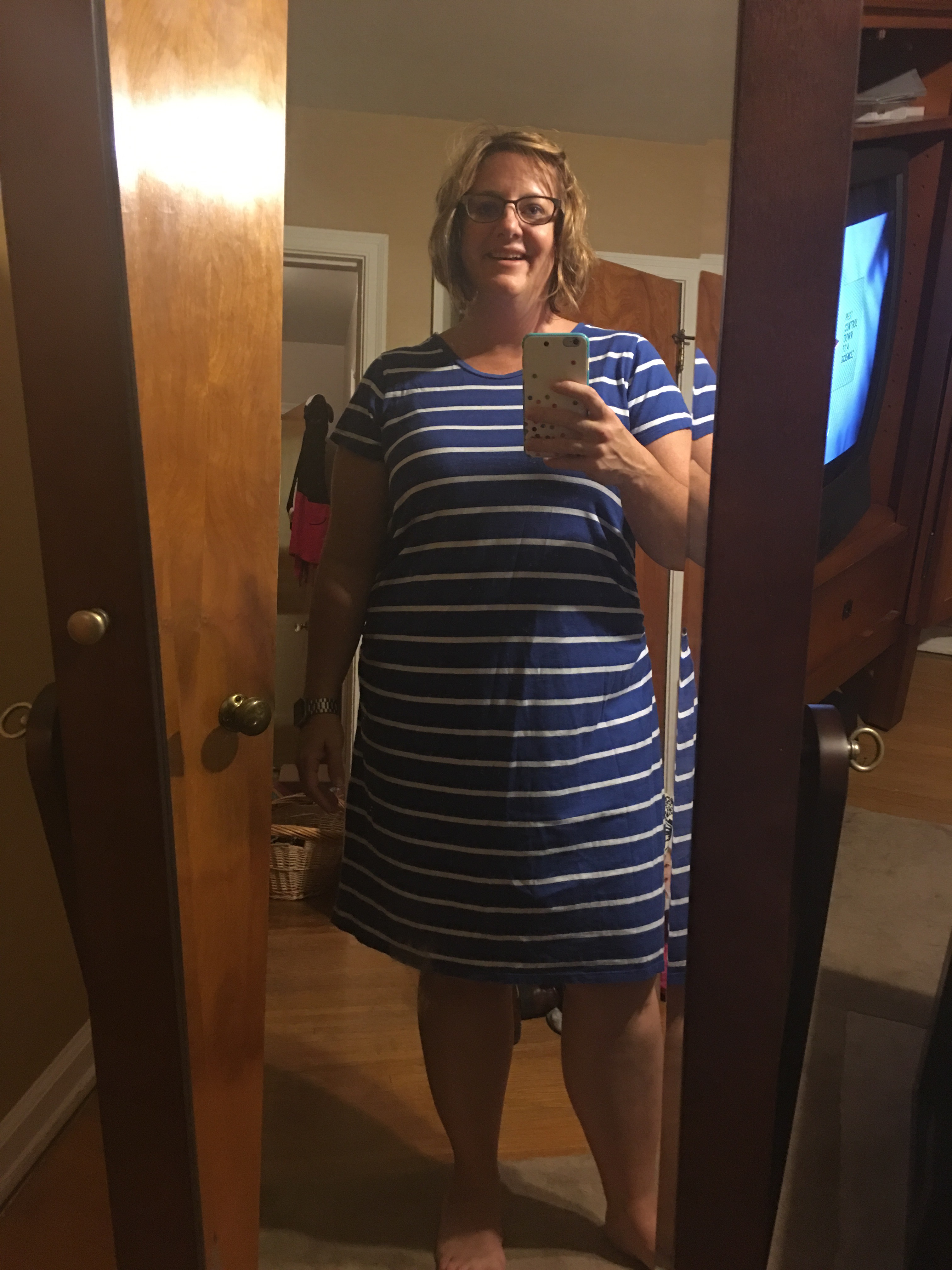 Yesterday we went to my BFF, Liz’s house. She recently lost a lot of weight and was giving me some of her old clothes (that I begged her for!). Last night I tried them all on and I am so happy to have some new back to school clothes. There were cute dresses in there, too. These were two of my favorites.
