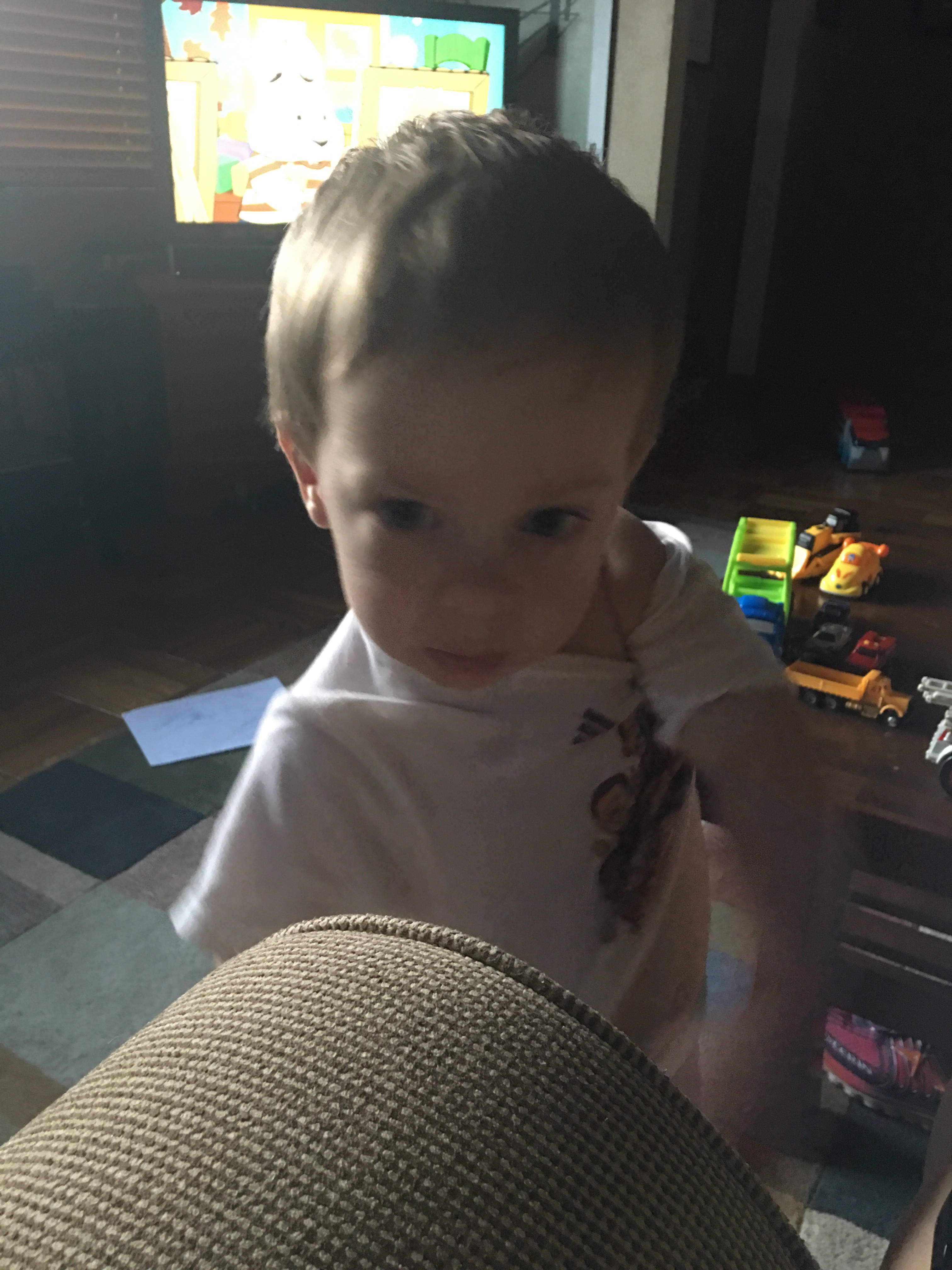 This is Henry trying to take his own shirt off. 😂