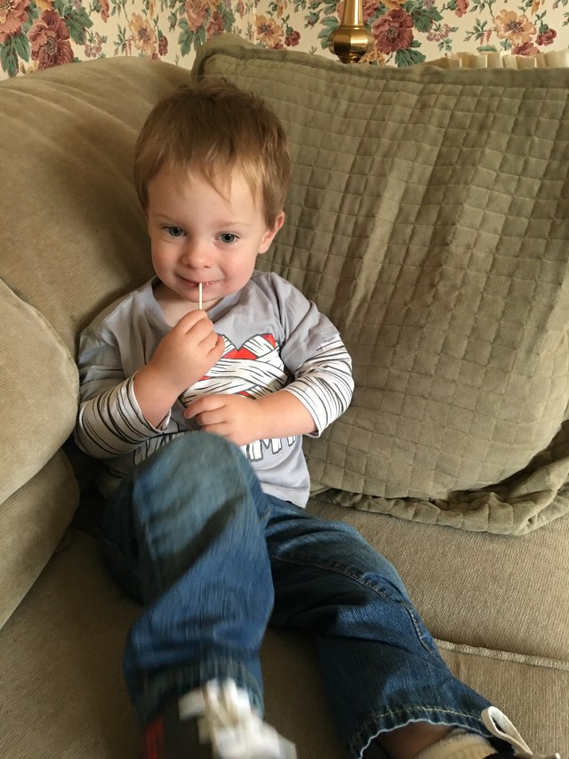 This is Henry on Friday. It’s only the second sucker he’s ever had. He looks so cute when he eats them. He gets tired of them quickly but that’s okay with me. I love this boy so much. He is my miracle baby!!! ❤️❤️ And I don’t let one day go by without intense gratitude that he is here with us.