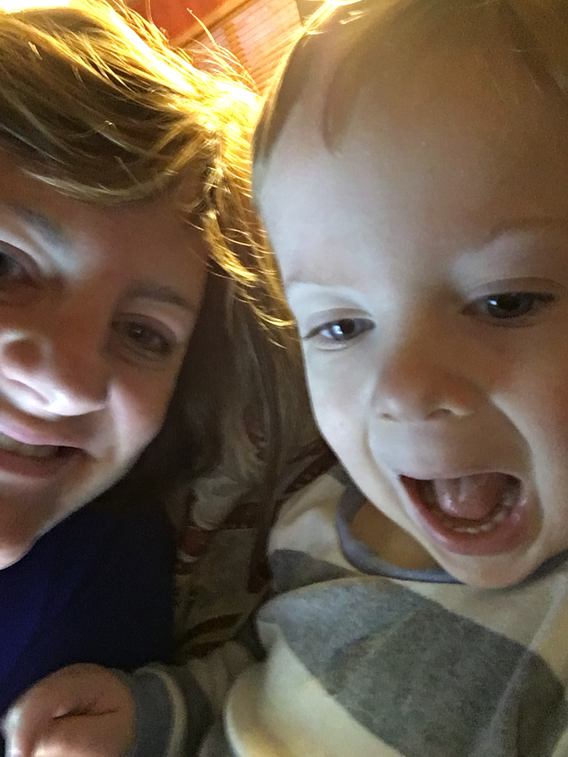 Henry and I are just sitting here chilling with our morning hair and our technology. ❤️