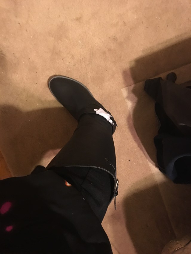 I got lots of great stuff for Christmas.  Craig got me a new robe which I needed desperately. My parents gave me makeup and money which were both things I needed and wanted! My mother in law got me really cute jeans and a sweater and shirt and some other things. But my favorite were these boots. They are what I call a non scale victory because I have never been able to wear these boots – even the wide calf ones- which is what these ones are. They are from Lane Bryant. And they fit!!! And I like them.