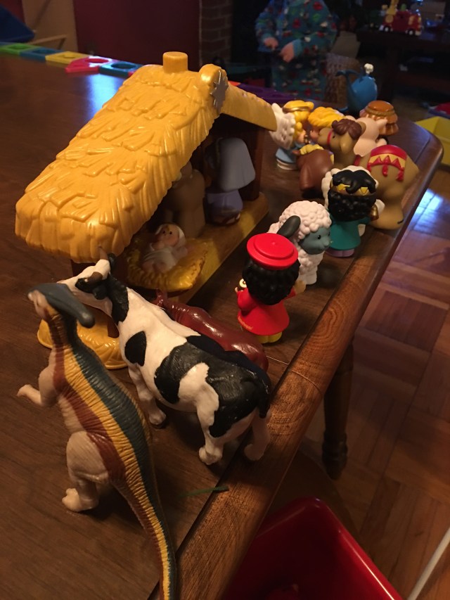 Also, he was recreating the nativity. Did you know there was a dinosaur there?