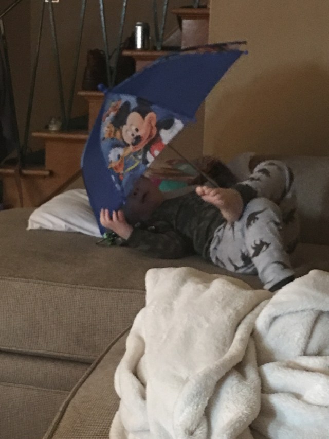 This is my Stinkerbutts hanging out on the couch with an umbrella and his monster trucks (his newest obsession.). He was hilarious yesterday- he was driving his Jeep in the backyard and would run into things and every time he would get out of the driver’s seat and say, “I have to check under the hood.” ππ