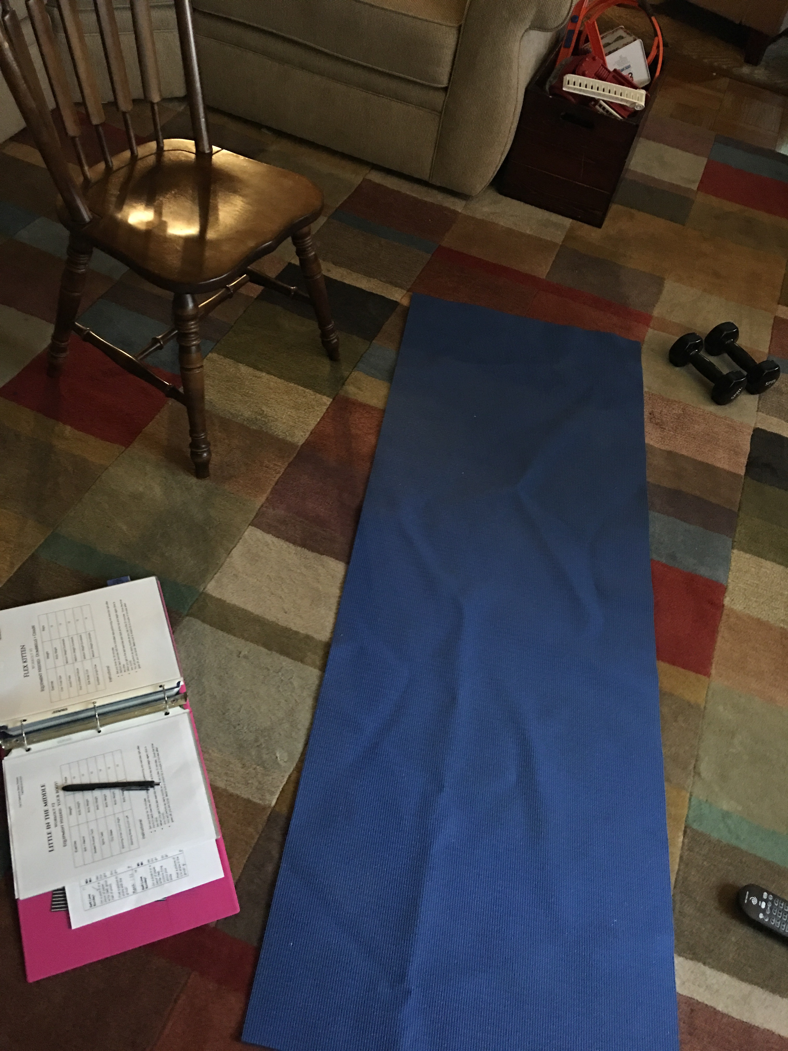 This is from yesterday when I was going one of the workouts from the challenge. You can see my binder on the left. These workouts are 20 minutes and I am doing them in addition to the treadmill at night. Next week I add body pump back in twice a week. I have had anxiety about going back to Body Pump. I can’t even explain it but I am going to go back! I love what it does for me and once I get back in the swing of it I know I’ll be happy.