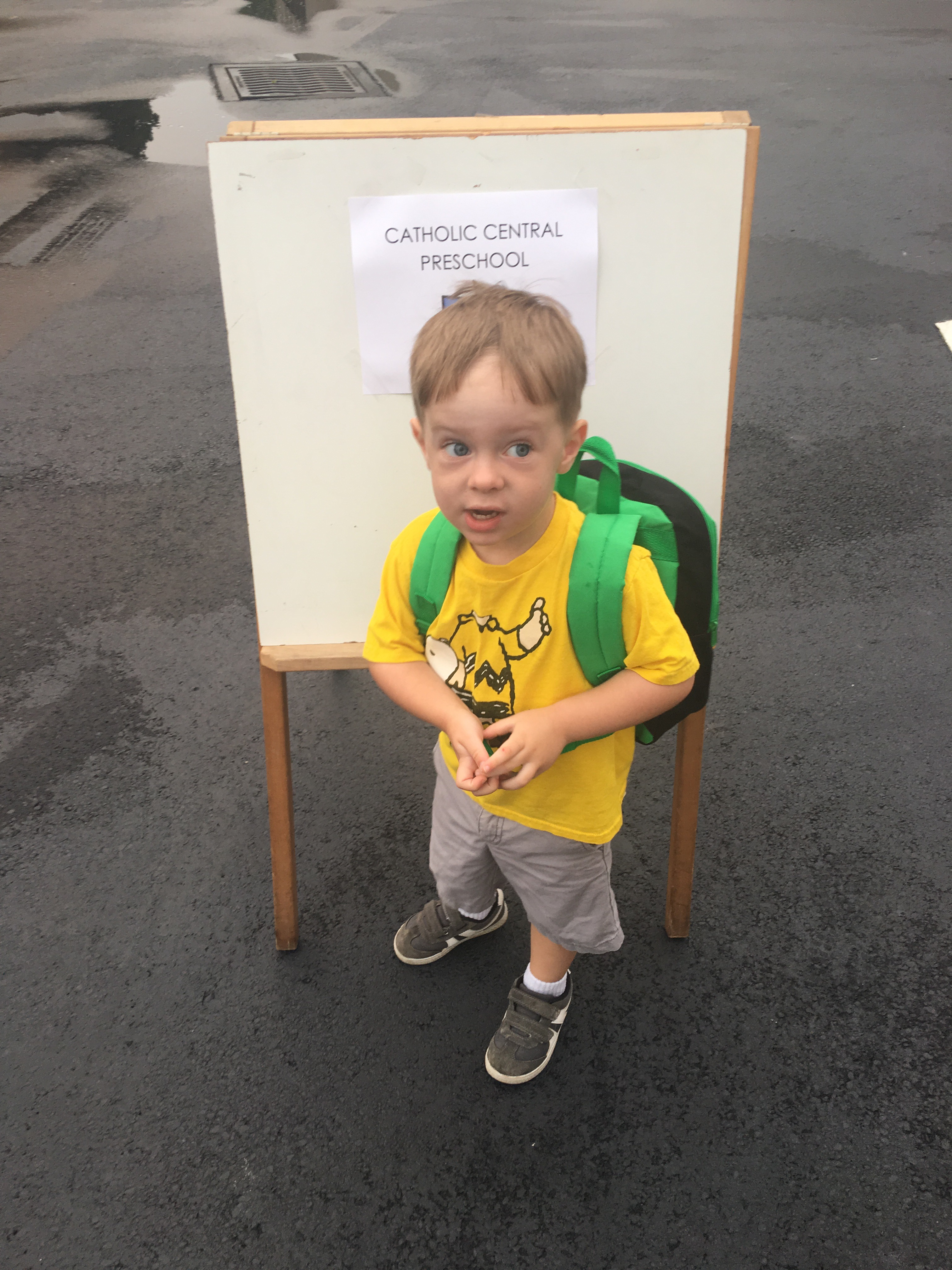 Well, today was Henry’s first day of pre-school so there was a lot of anxiety in the house this morning as we were sending our little boy out into the world. It’s so scary and exciting at the same time. Our preschool program is amazing and I know he will do well, but I still had the butterflies. Drop off went great, he was so excited. Here are some pictures: