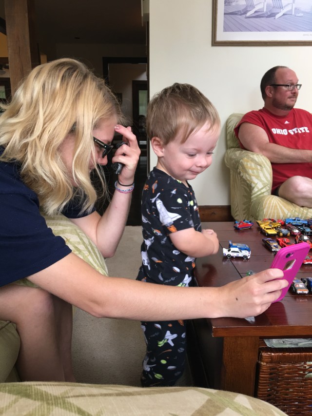 We got back from our family vacation last night at 9:00 after being on the road for 12 hours. With a 2 year old. He did really well, considering his age, and lack of love for the car. He really wasn’t too bad until the last hour and forty five minutes. He just wanted to get up. It was really nice, we had my 19 year old niece, Alissa, riding with us. She sat in the back with him and was really attentive to his needs. As soon as we got home Henry ran like crazy around our back yard.